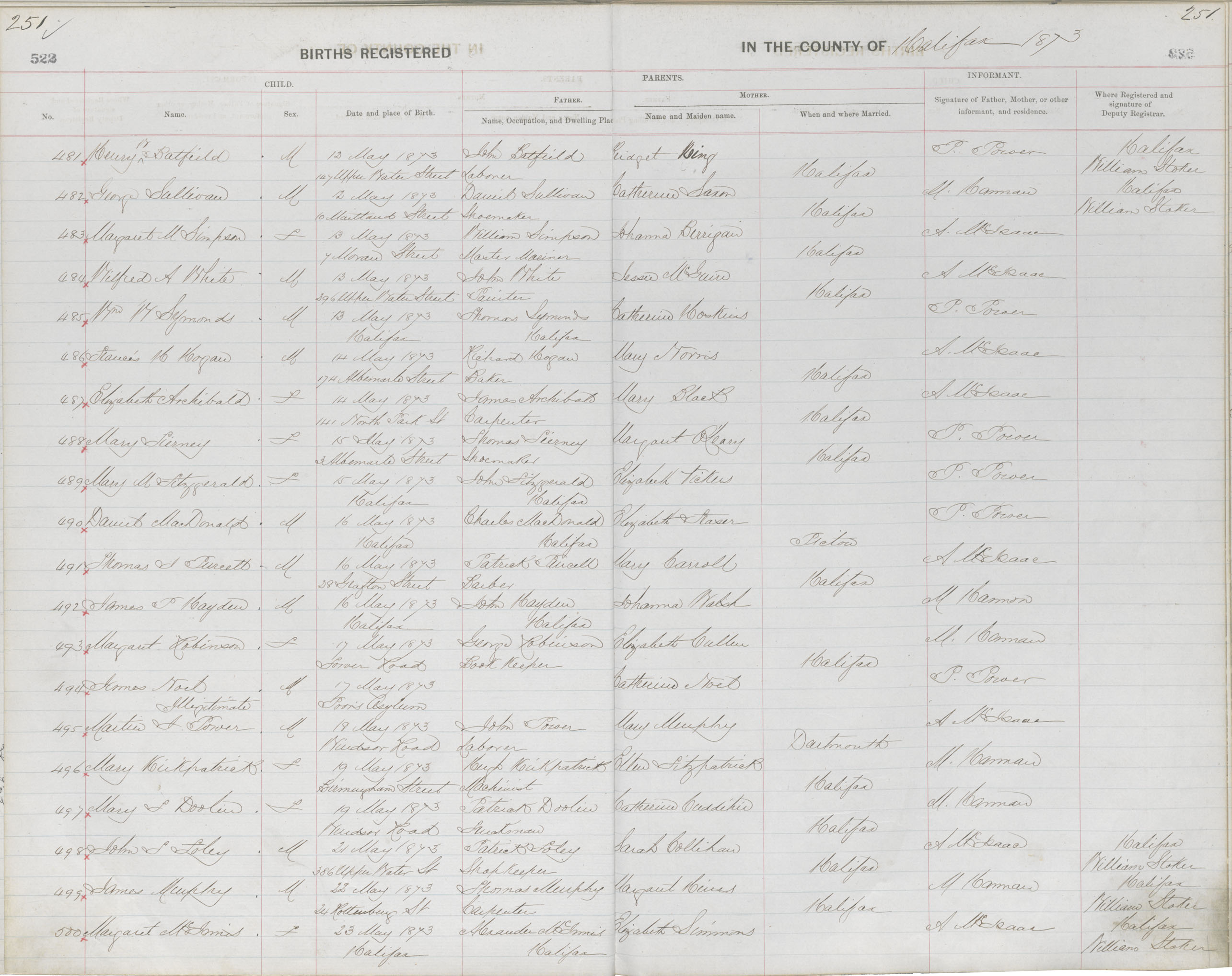 Birth Registration: Year: 1873 book: 1810 page: 251 number: 483