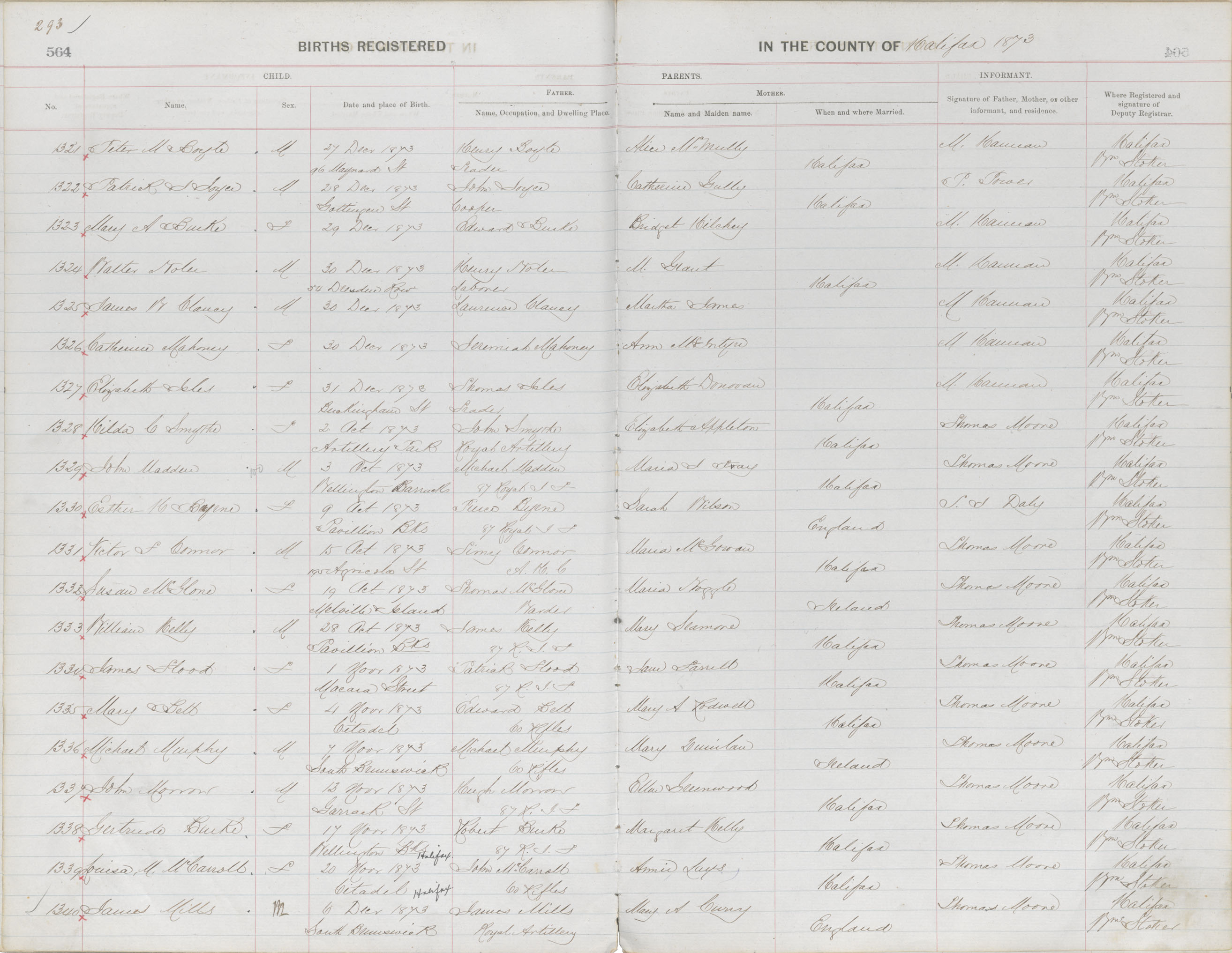 Birth Registration: Year: 1873 book: 1810 page: 293 number: 1321
