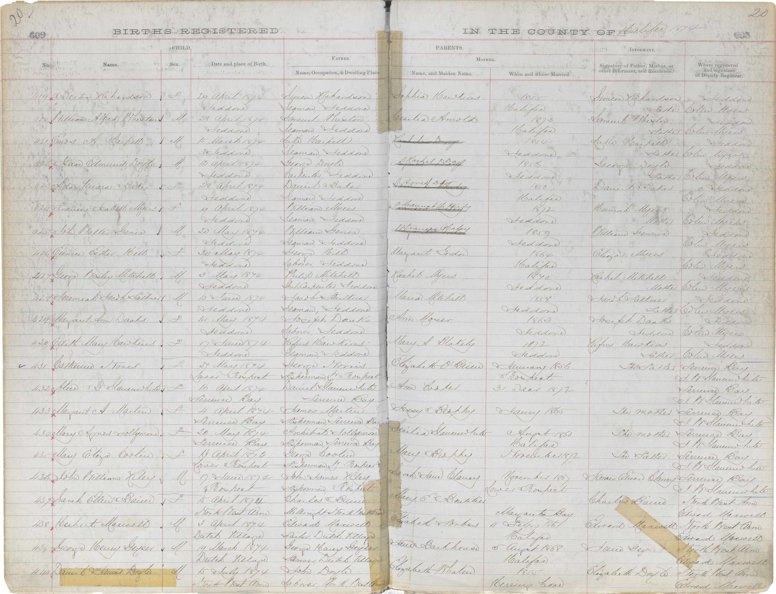 Birth Registration: Year: 1874 book: 1811 page: 20 number: 419