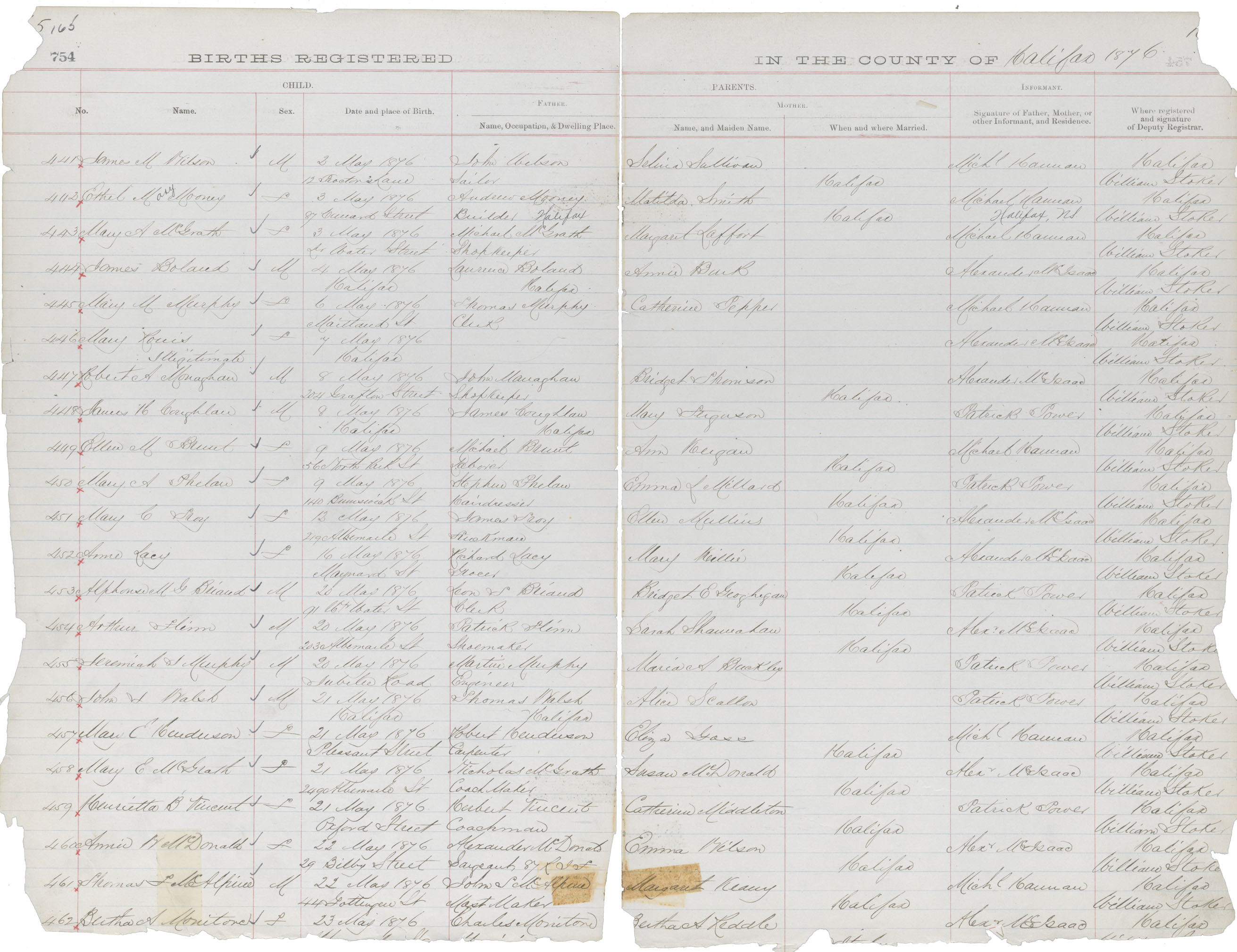 Birth Registration: Year: 1876 book: 1811 page: 165 number: 462
