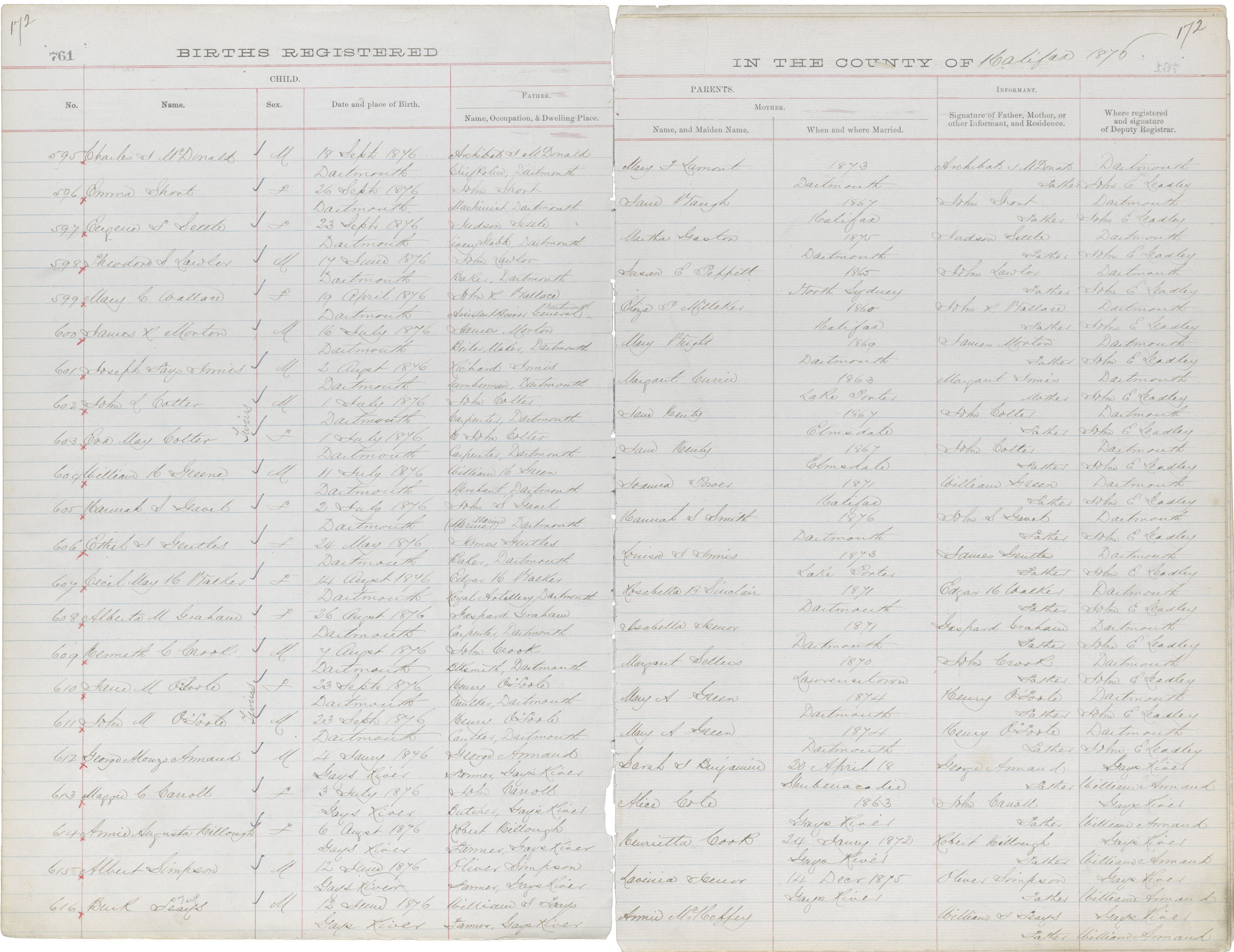 Birth Registration: Year: 1876 book: 1811 page: 172 number: 615