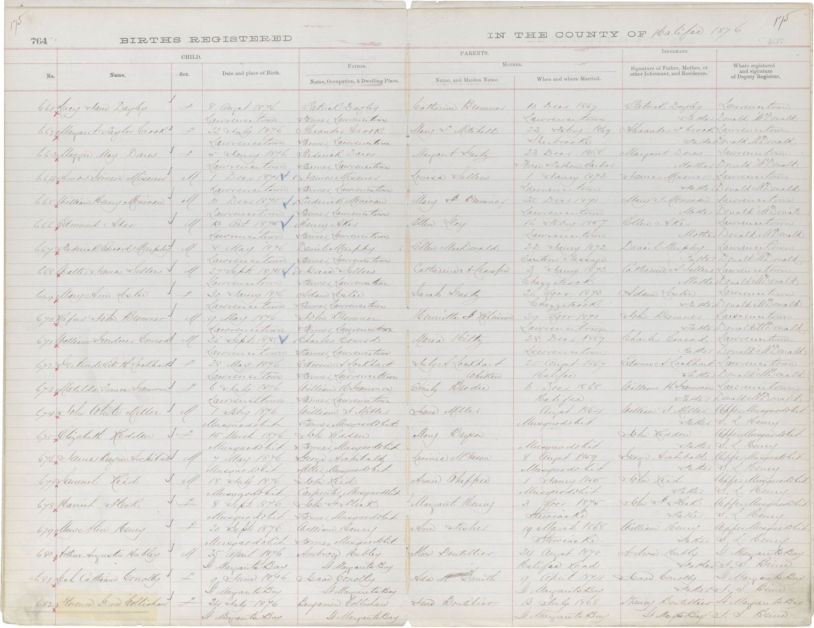 Birth Registration: Year: 1876 book: 1811 page: 175 number: 661
