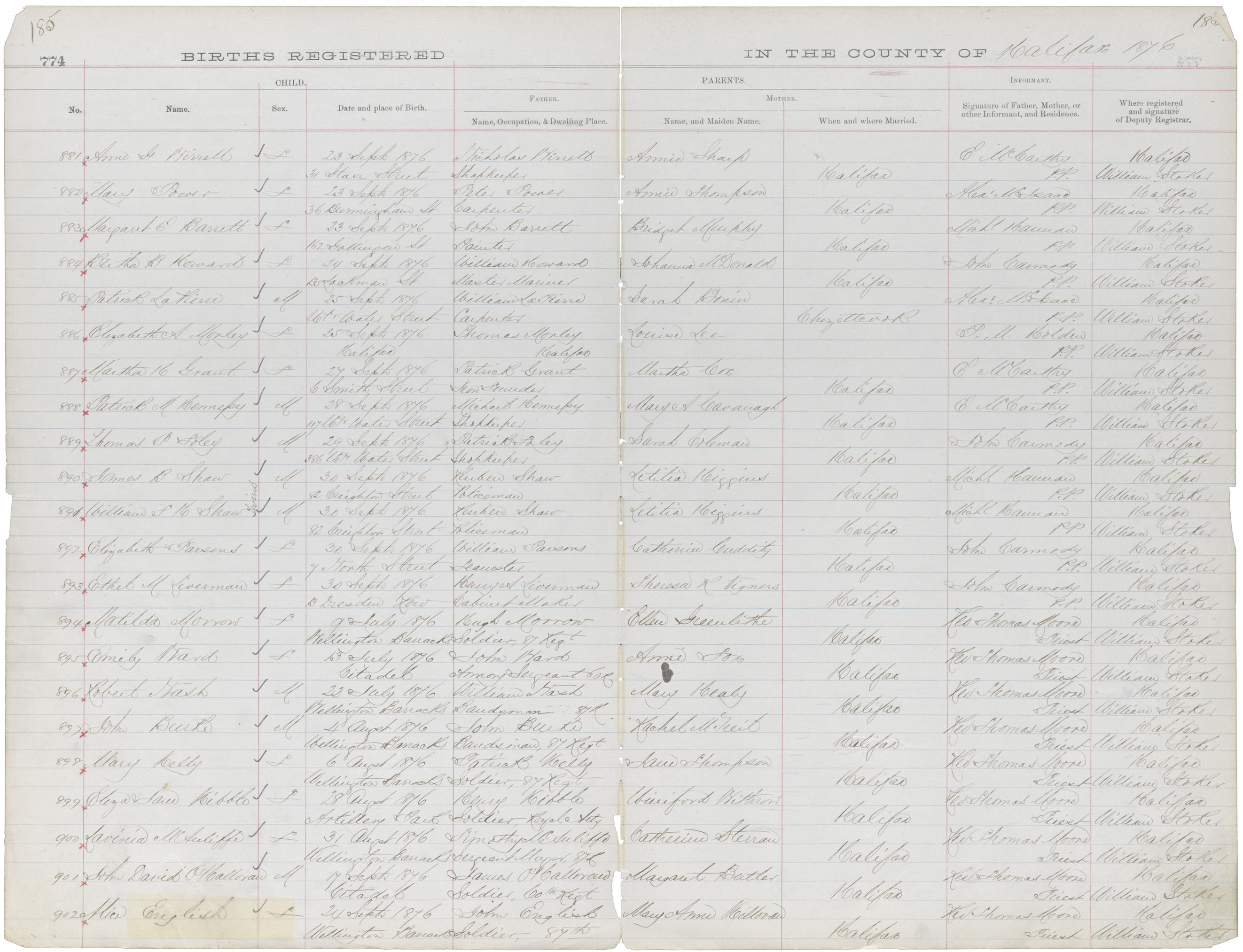 Birth Registration: Year: 1876 book: 1811 page: 185 number: 902