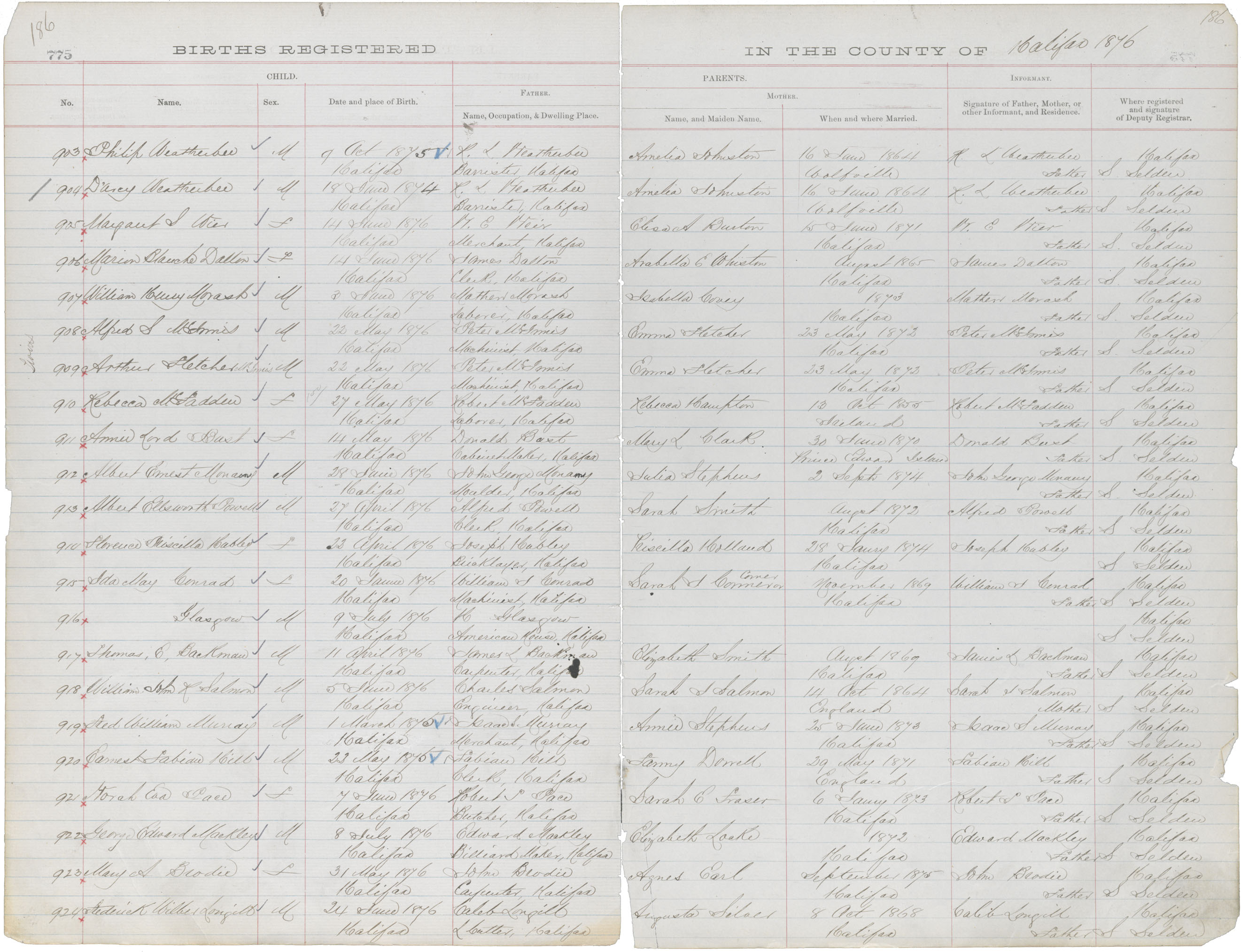 Birth Registration: Year: 1876 book: 1811 page: 186 number: 924