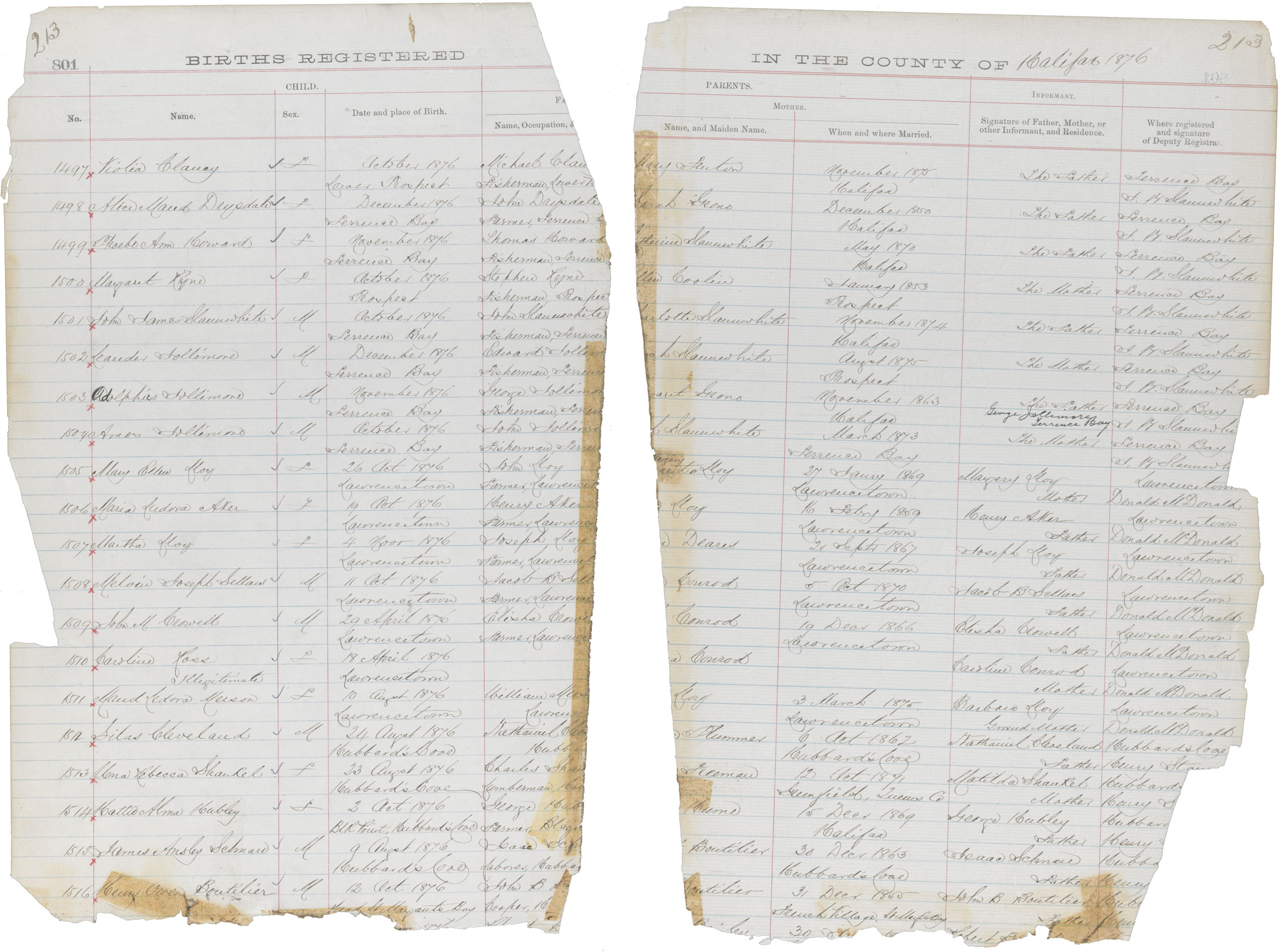 Birth Registration: Year: 1876 book: 1811 page: 213 number: 1497