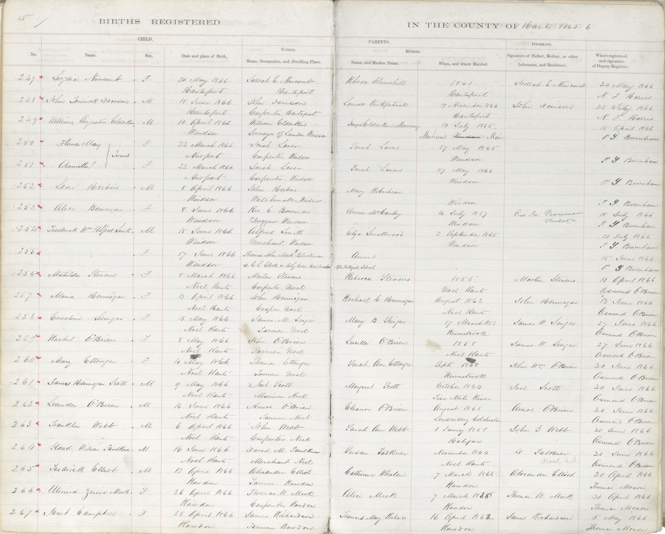 Birth Registration: Year: 1866 book: 1812 page: 15 number: 247