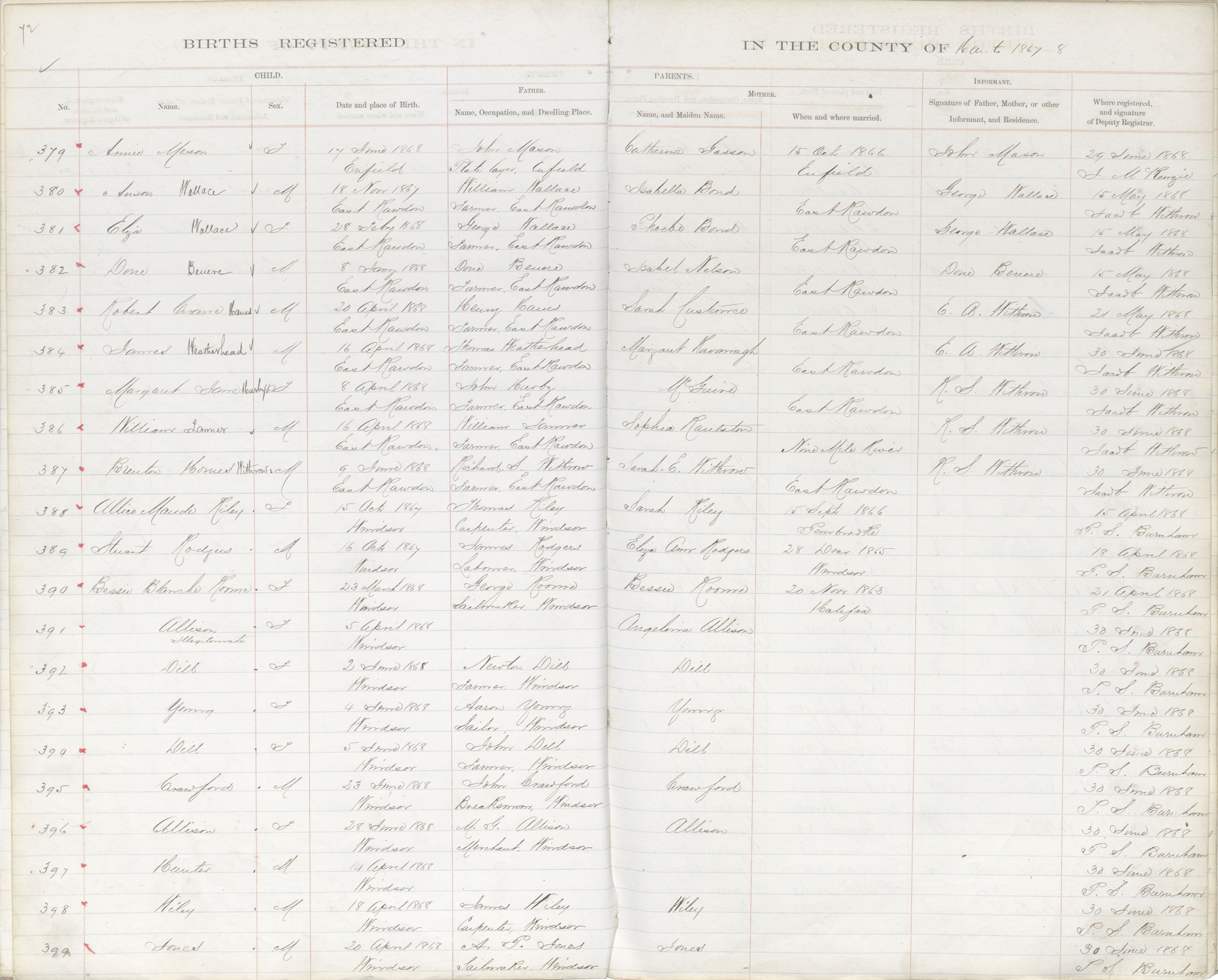 Male Birth Registration: Year: 1868 book: 1812 page: 72 number: 399