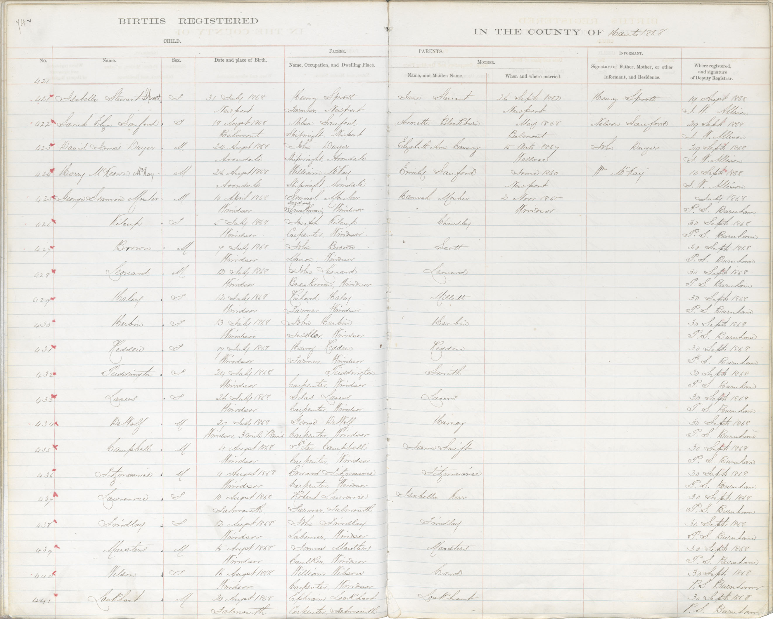 Male Birth Registration: Year: 1868 book: 1812 page: 74 number: 441