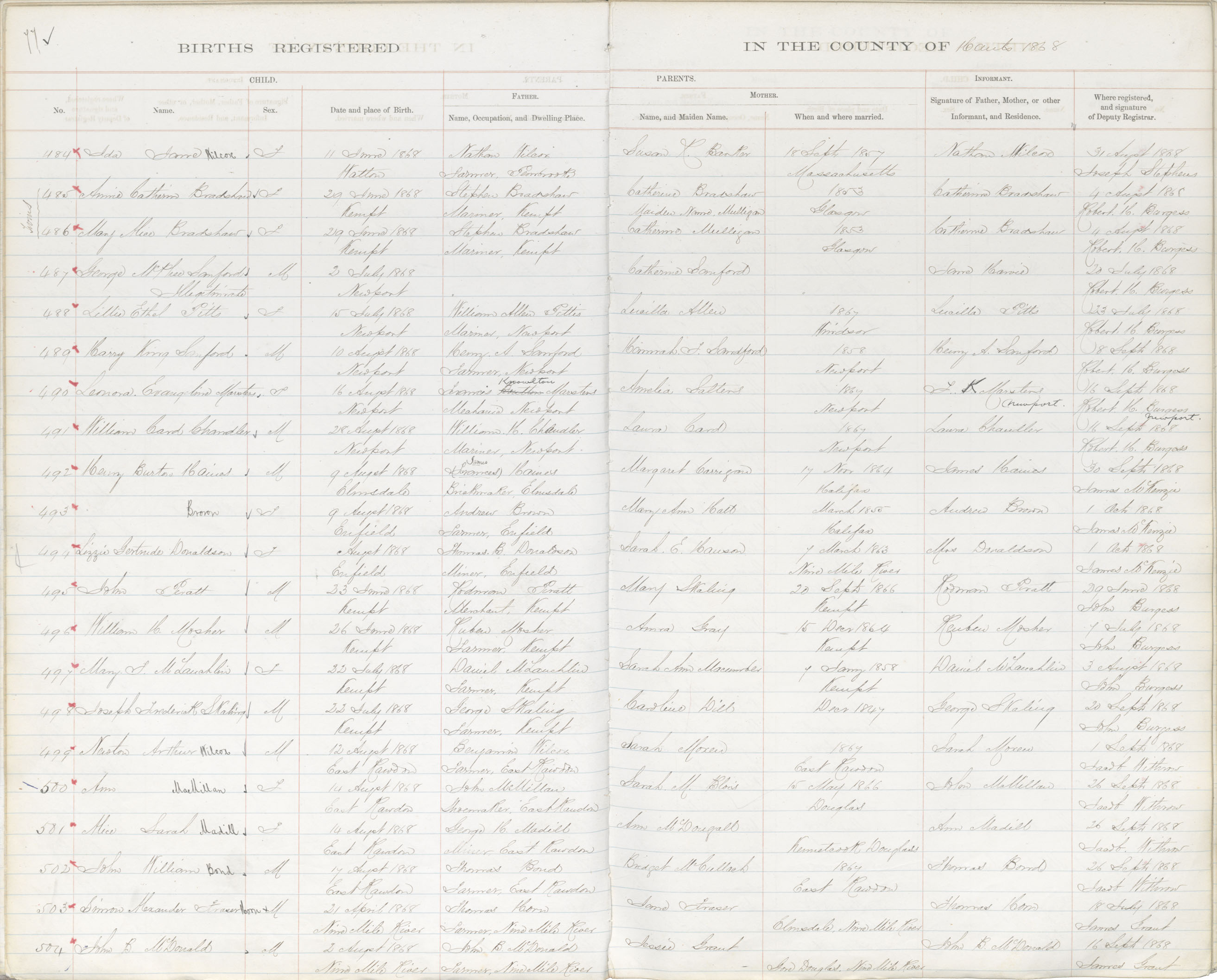 Birth Registration: Year: 1868 book: 1812 page: 77 number: 504
