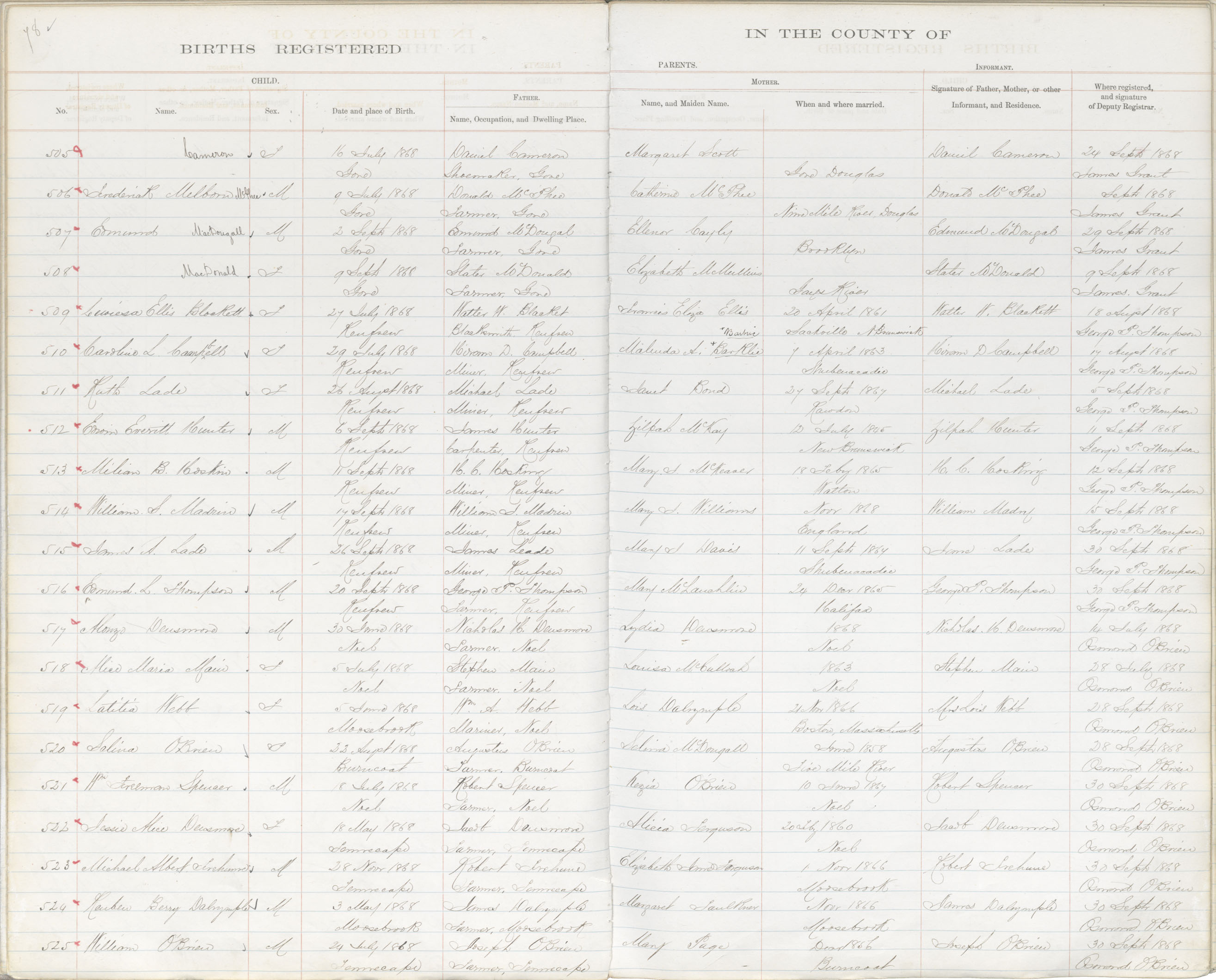 Female Birth Registration: Year: 1868 book: 1812 page: 78 number: 508