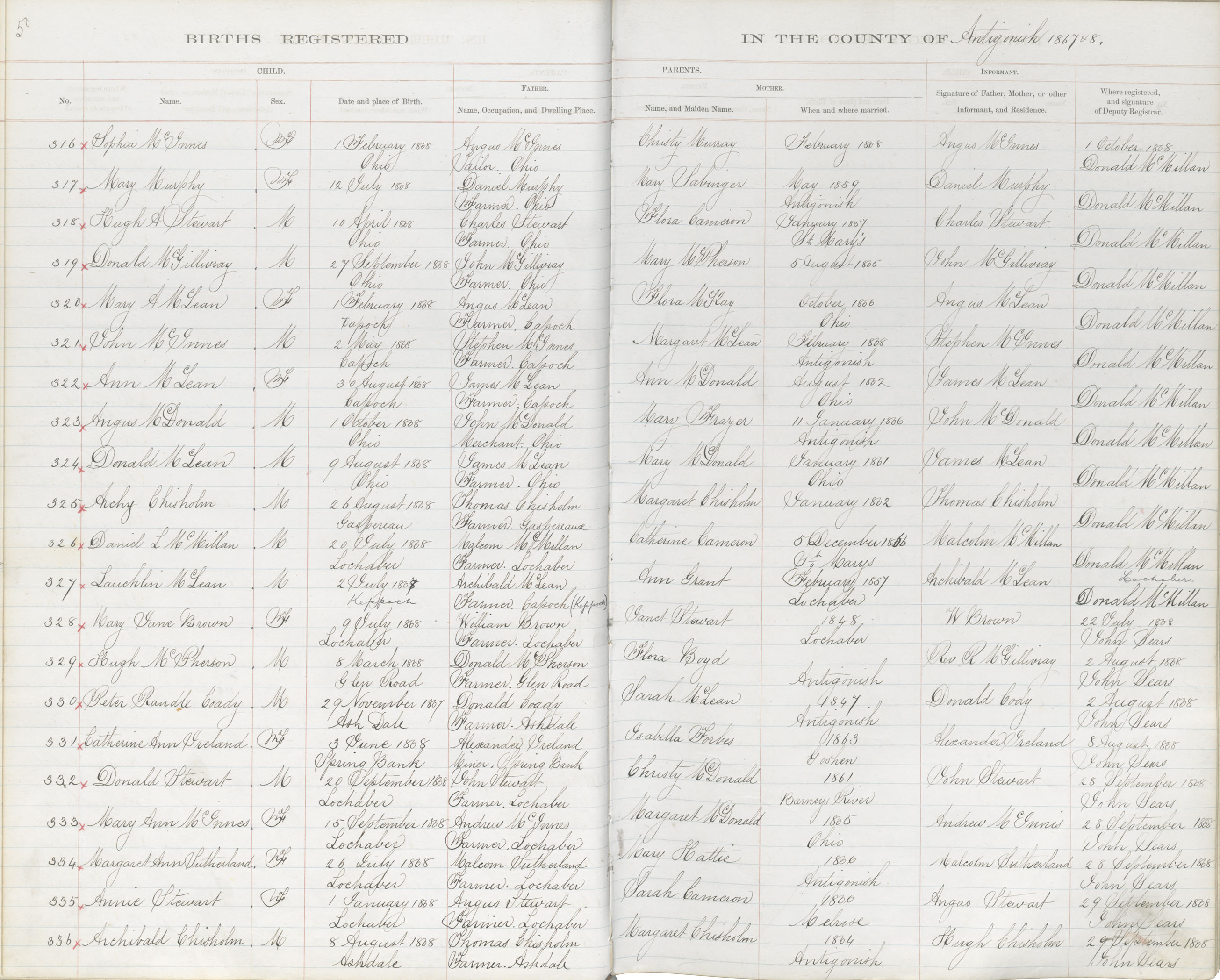 Birth Registration: Year: 1868 book: 1802 page: 50 number: 336