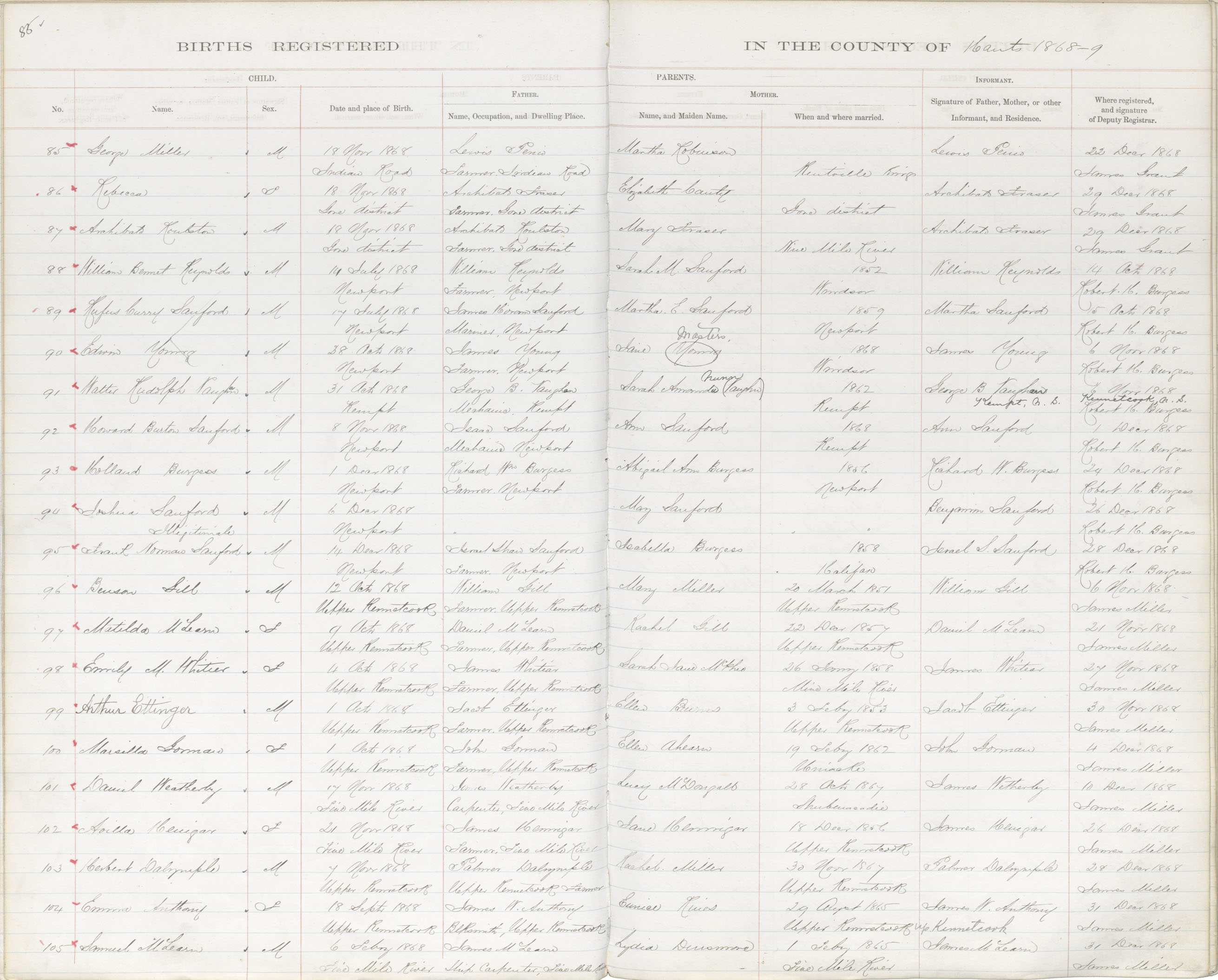 Birth Registration: Year: 1868 book: 1812 page: 85 number: 85