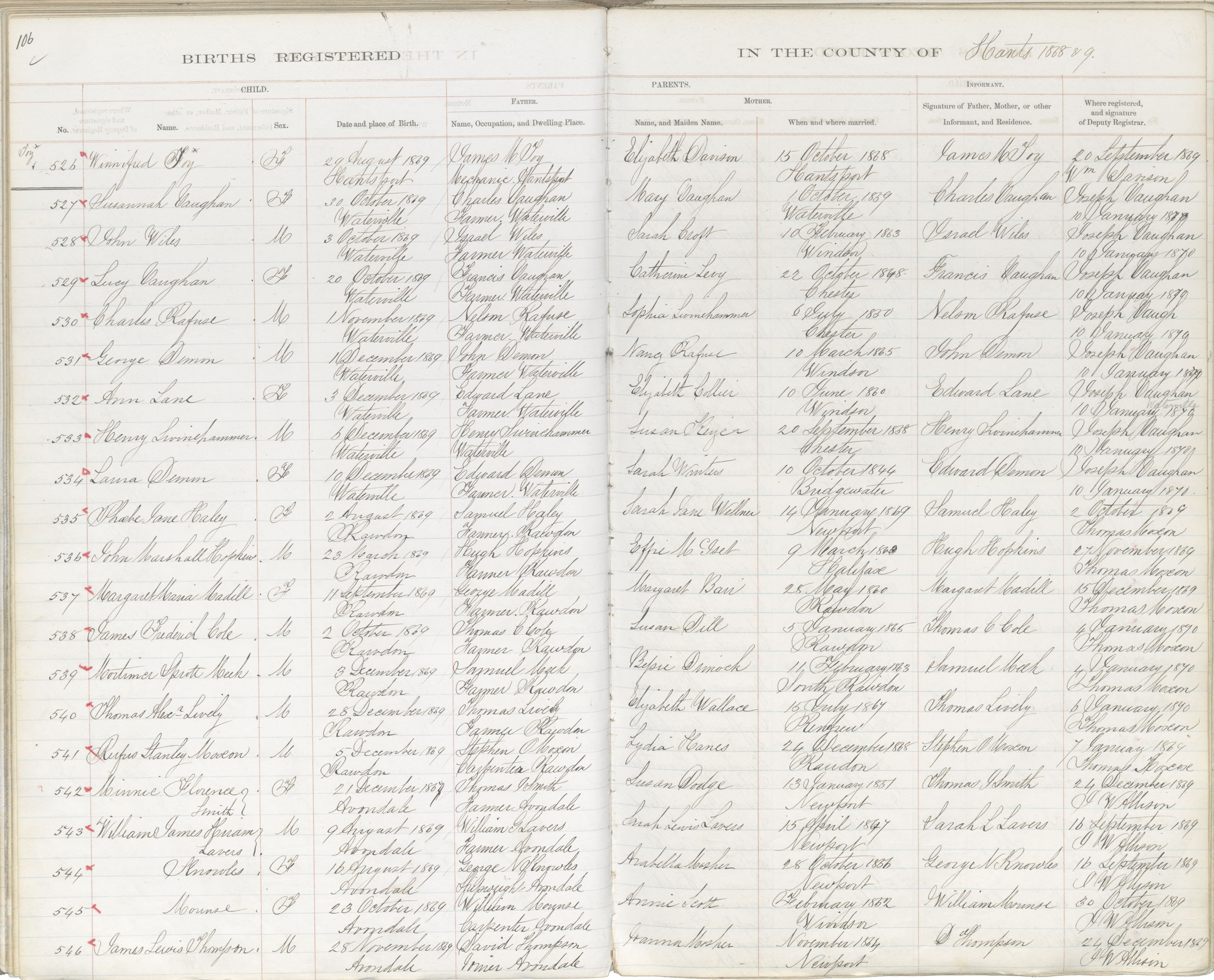 Birth Registration: Year: 1869 book: 1812 page: 106 number: 546