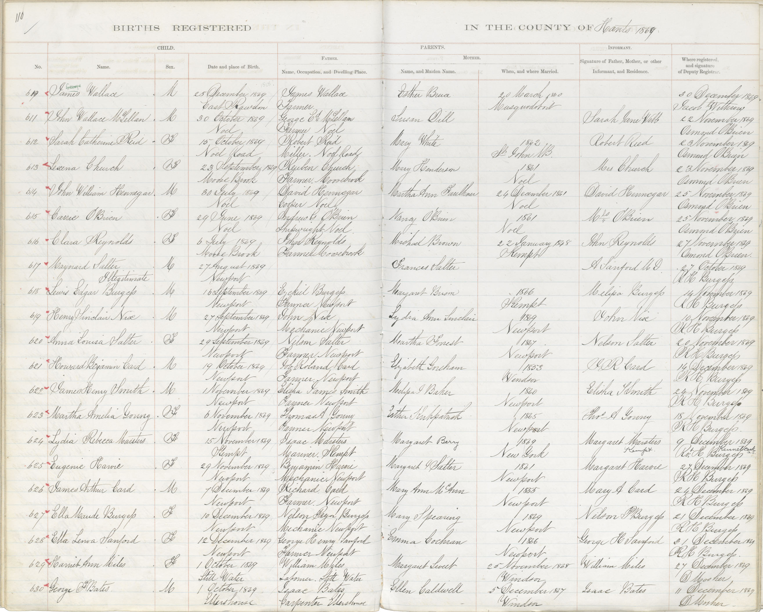 Birth Registration: Year: 1869 book: 1812 page: 110 number: 630