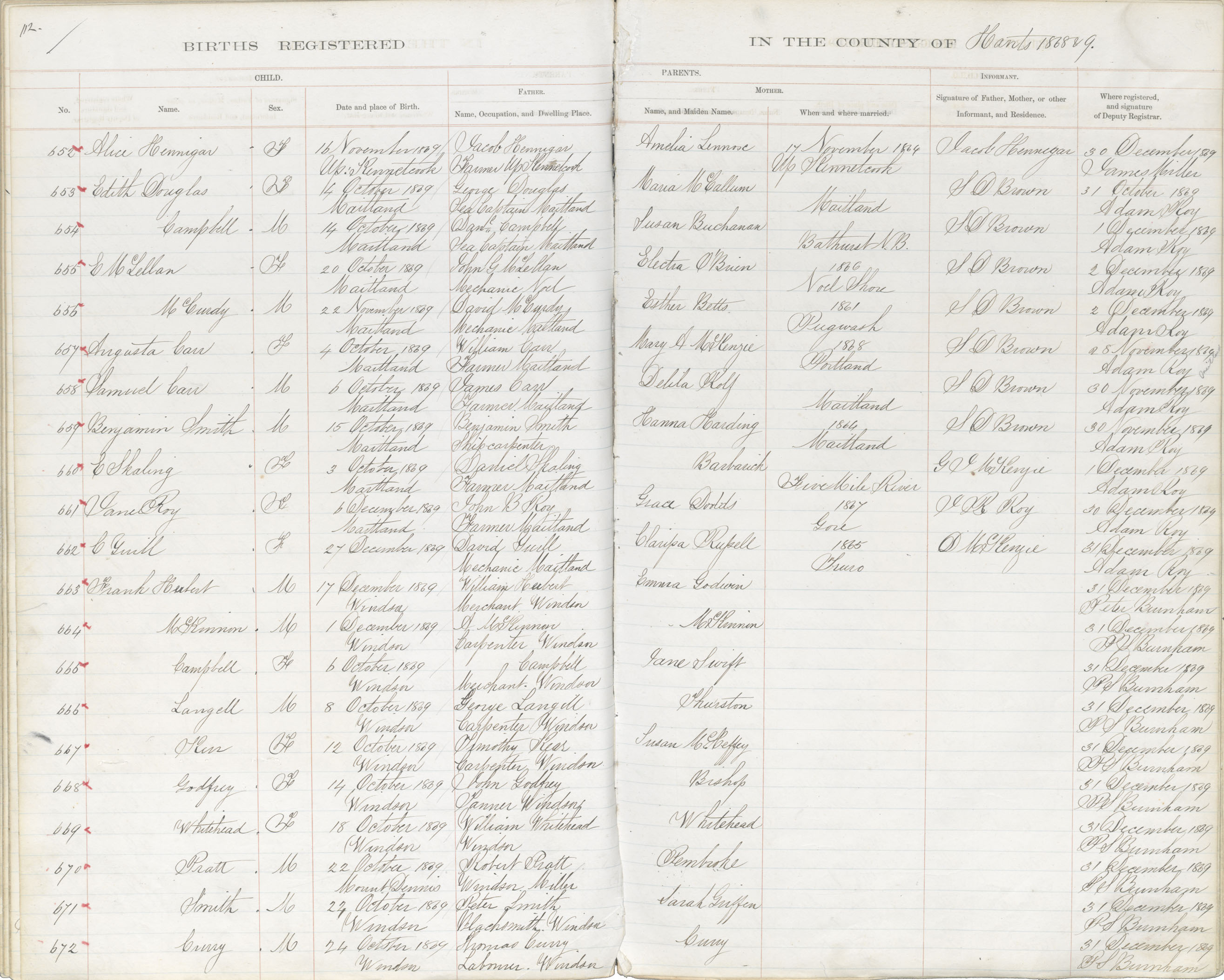 Female Birth Registration: Year: 1869 book: 1812 page: 112 number: 667