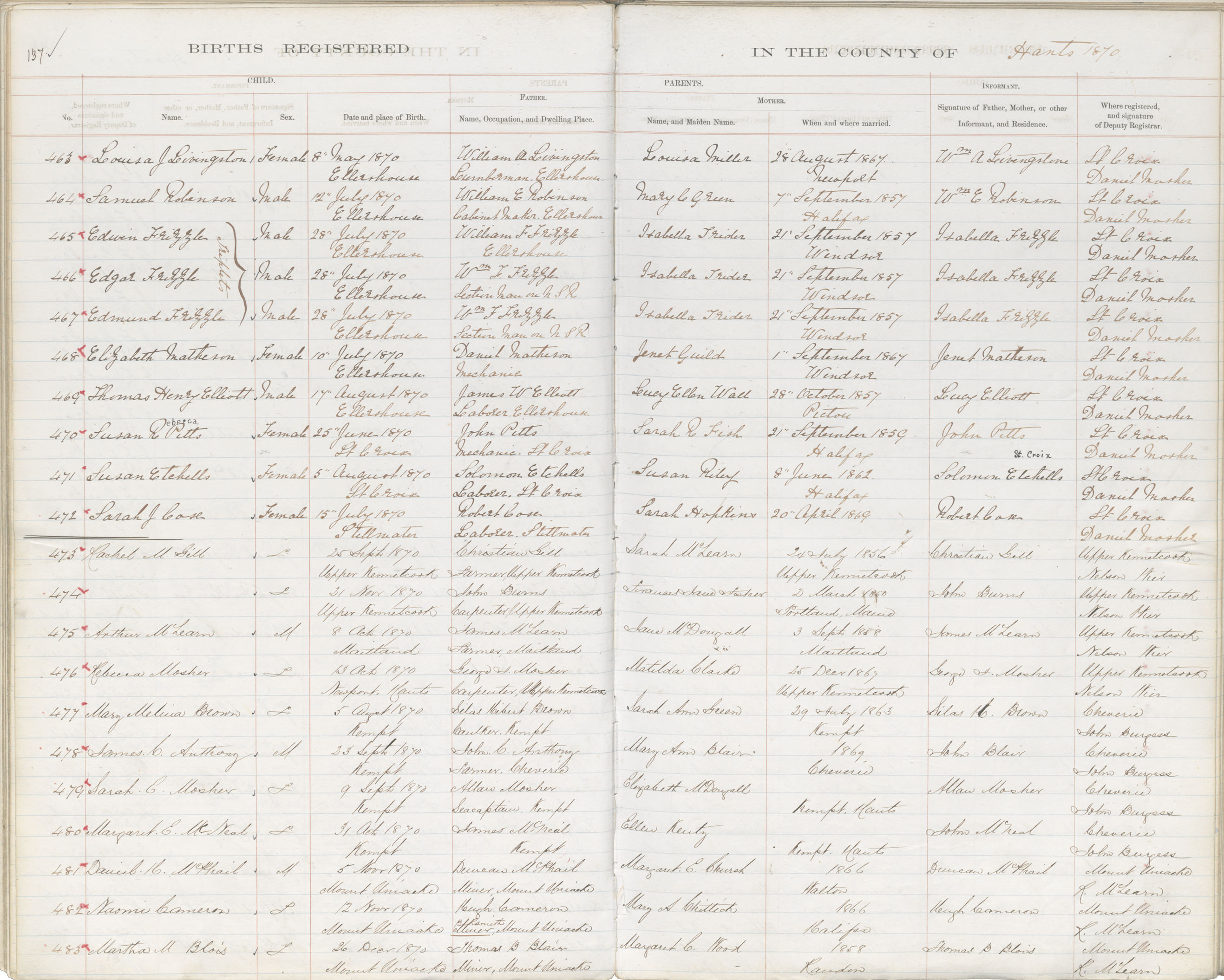 Birth Registration: Year: 1870 book: 1812 page: 137 number: 463