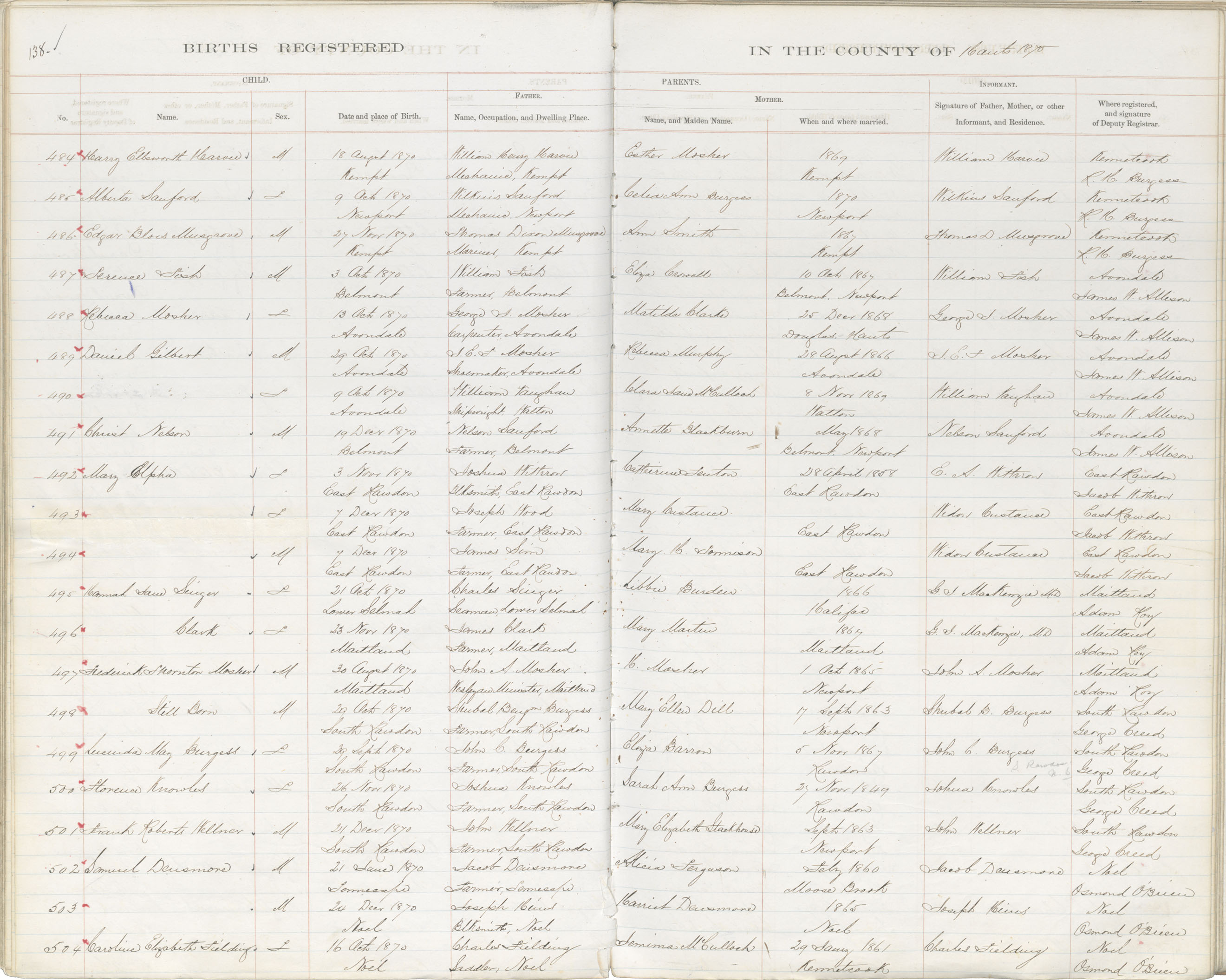Birth Registration: Year: 1870 book: 1812 page: 138 number: 484