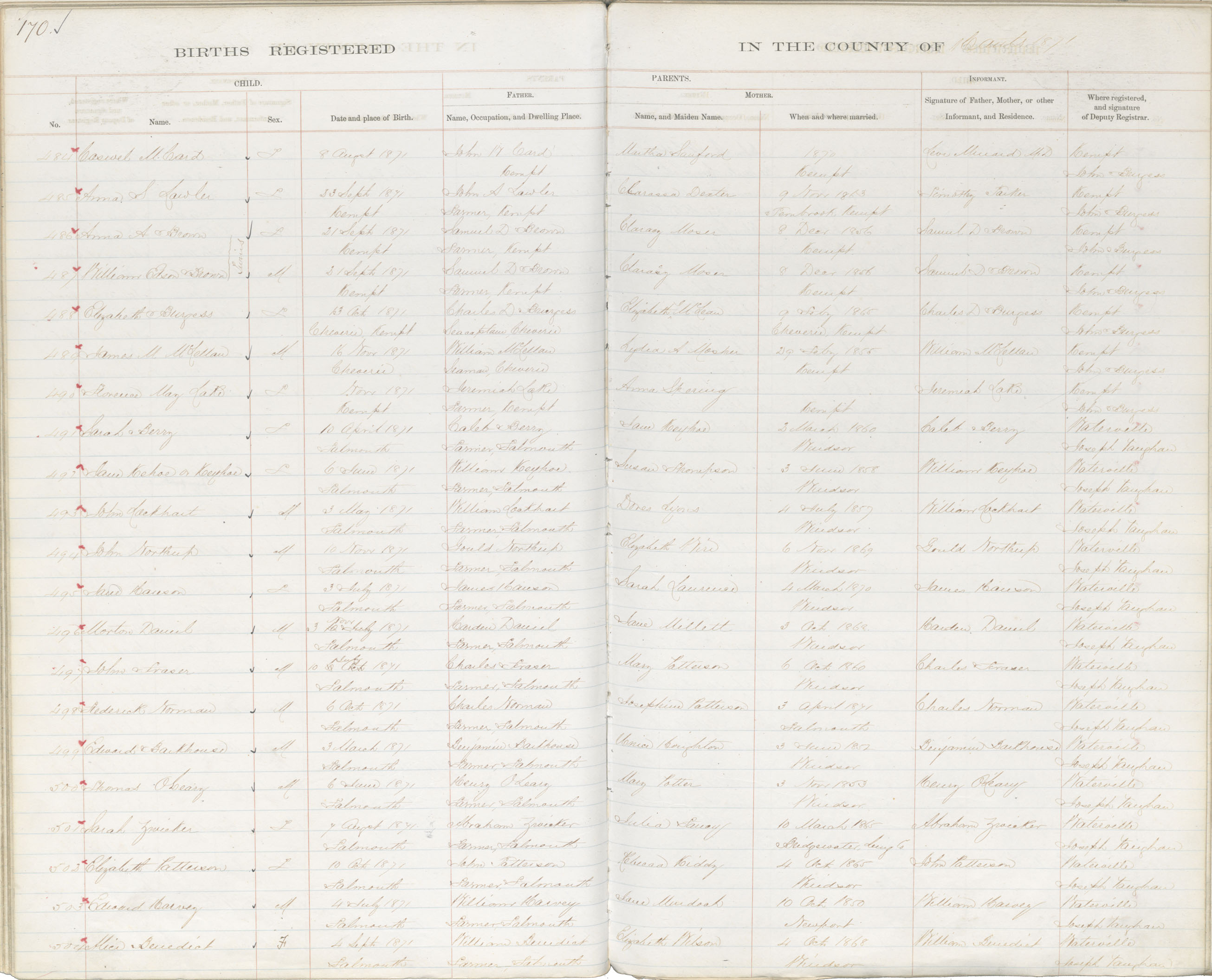Female Birth Registration: Year: 1871 book: 1812 page: 170 number: 484
