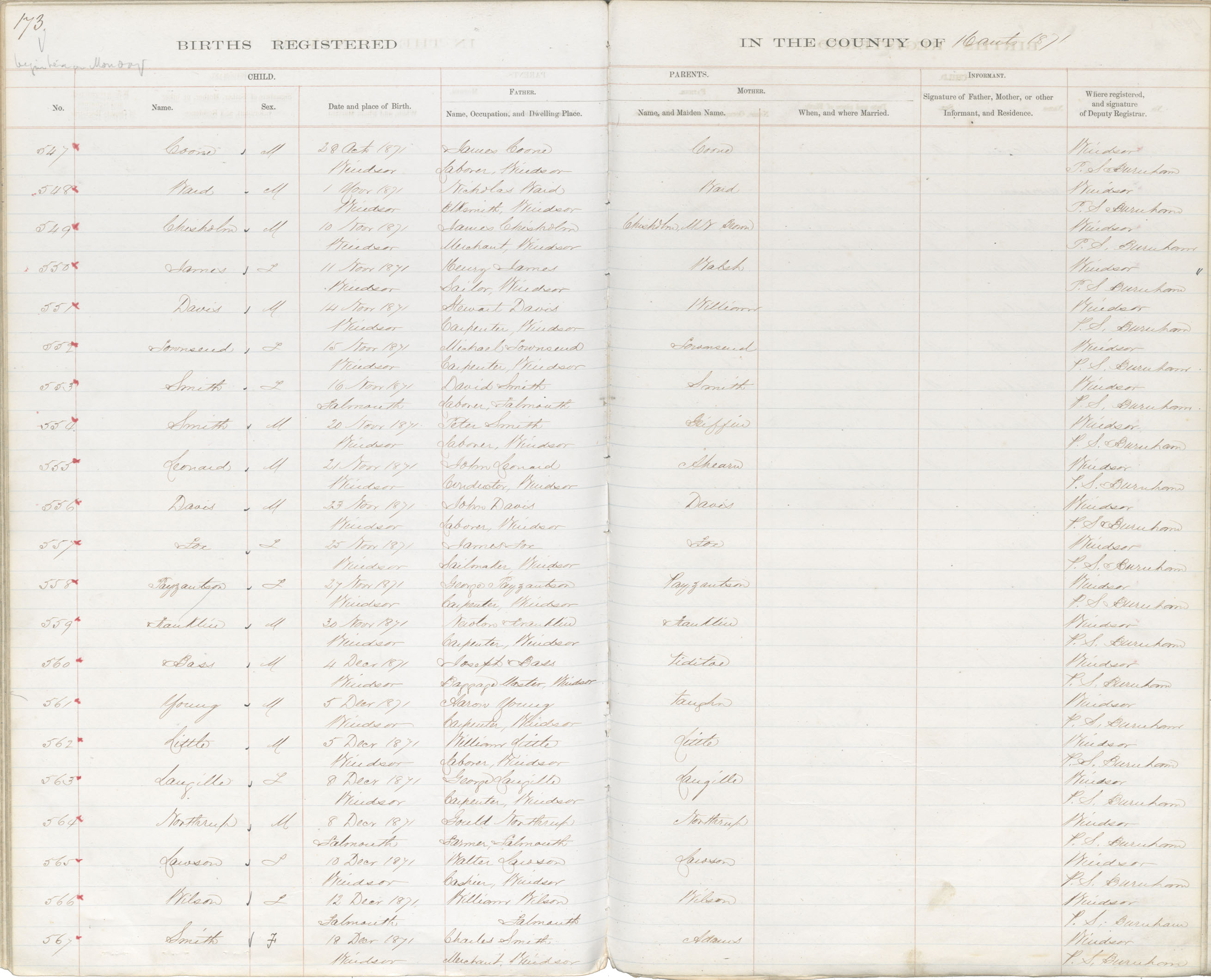 Male Birth Registration: Year: 1871 book: 1812 page: 173 number: 547