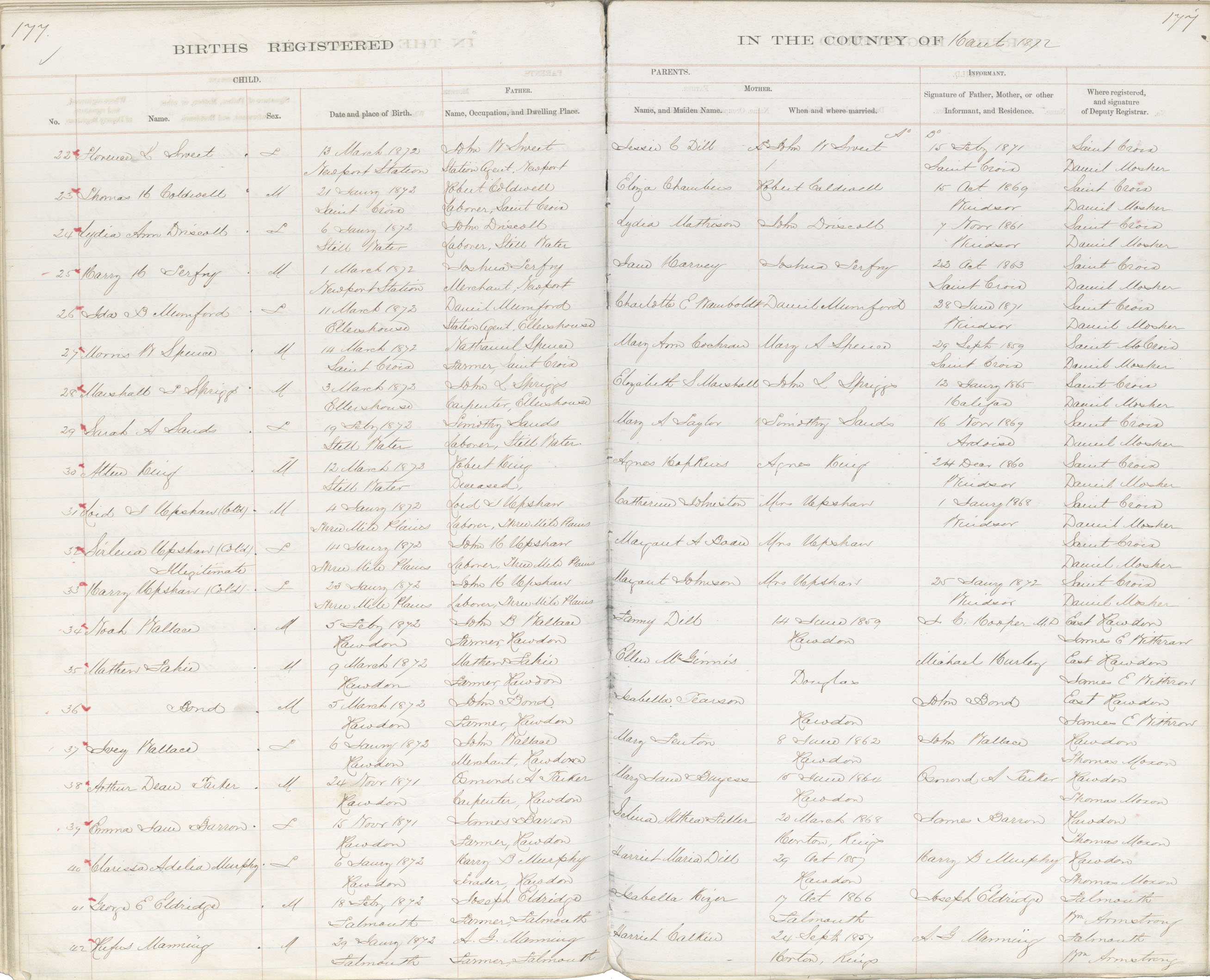 Birth Registration: Year: 1872 book: 1812 page: 177 number: 42