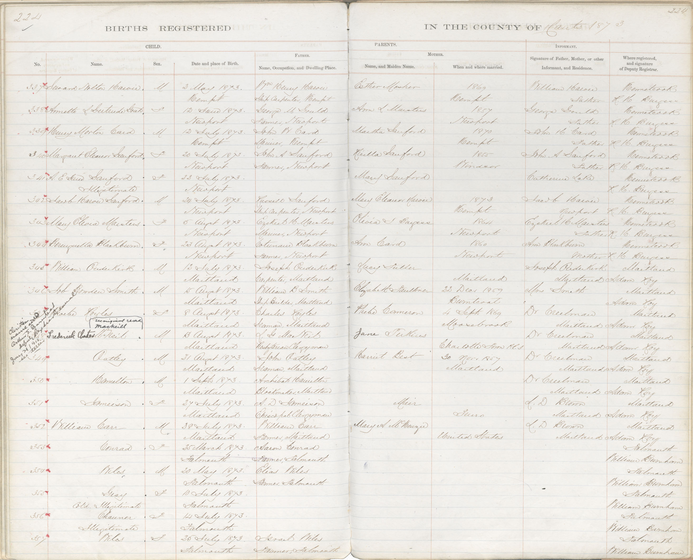 Female Birth Registration: Year: 1873 book: 1812 page: 224 number: 357