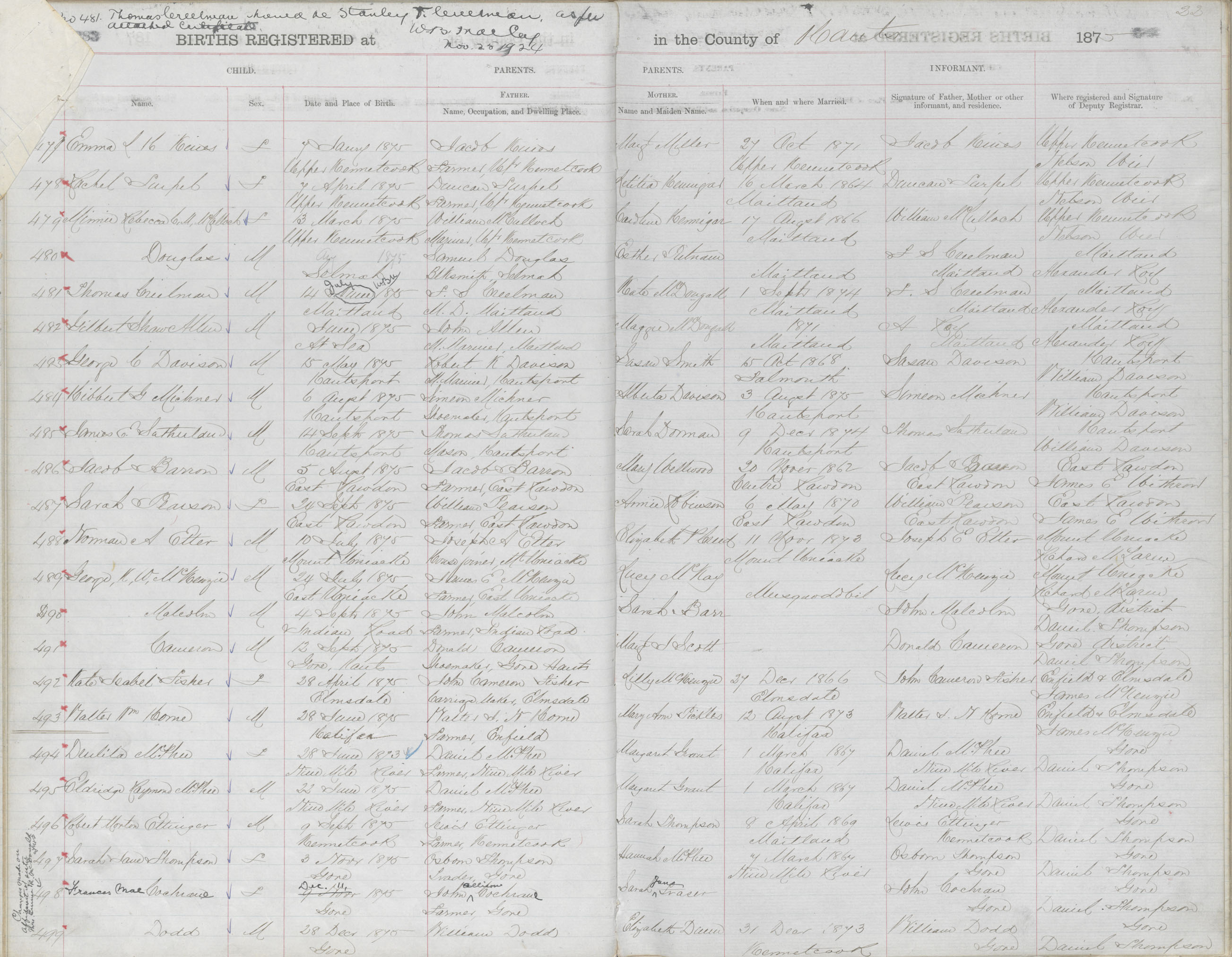 Birth Registration: Year: 1875 book: 1813 page: 22 number: 481