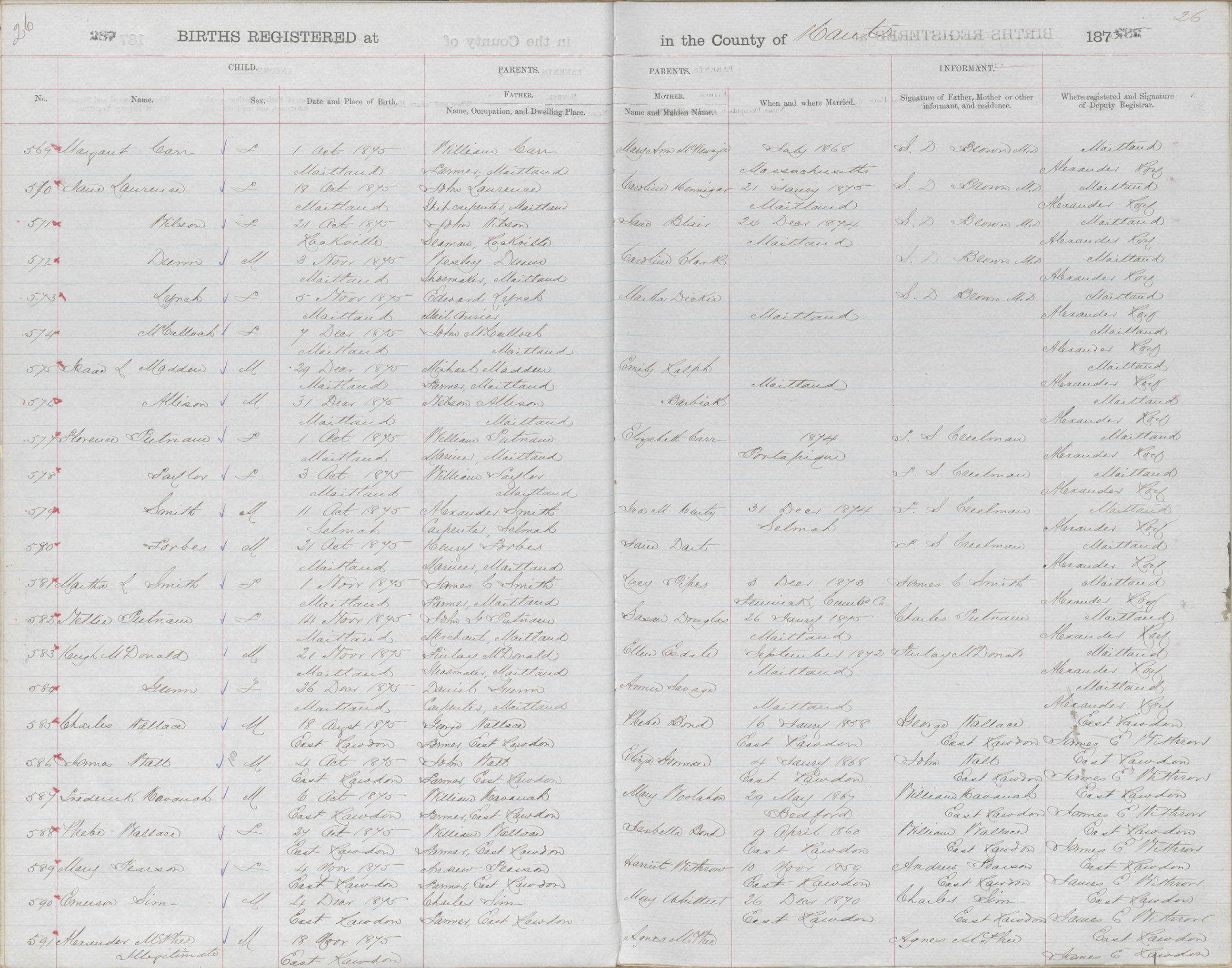 Birth Registration: Year: 1875 book: 1813 page: 26 number: 590