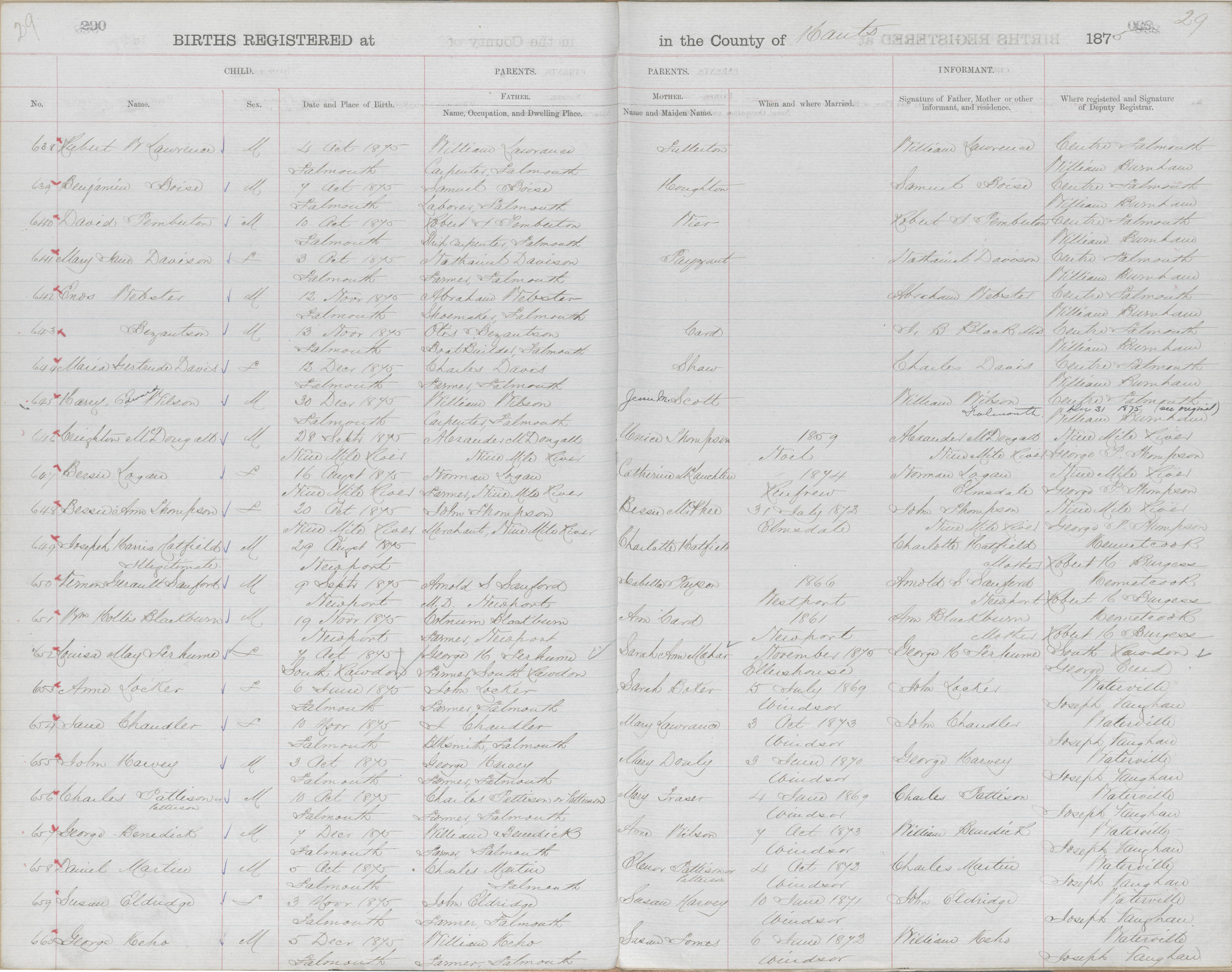 Birth Registration: Year: 1875 book: 1813 page: 29 number: 638
