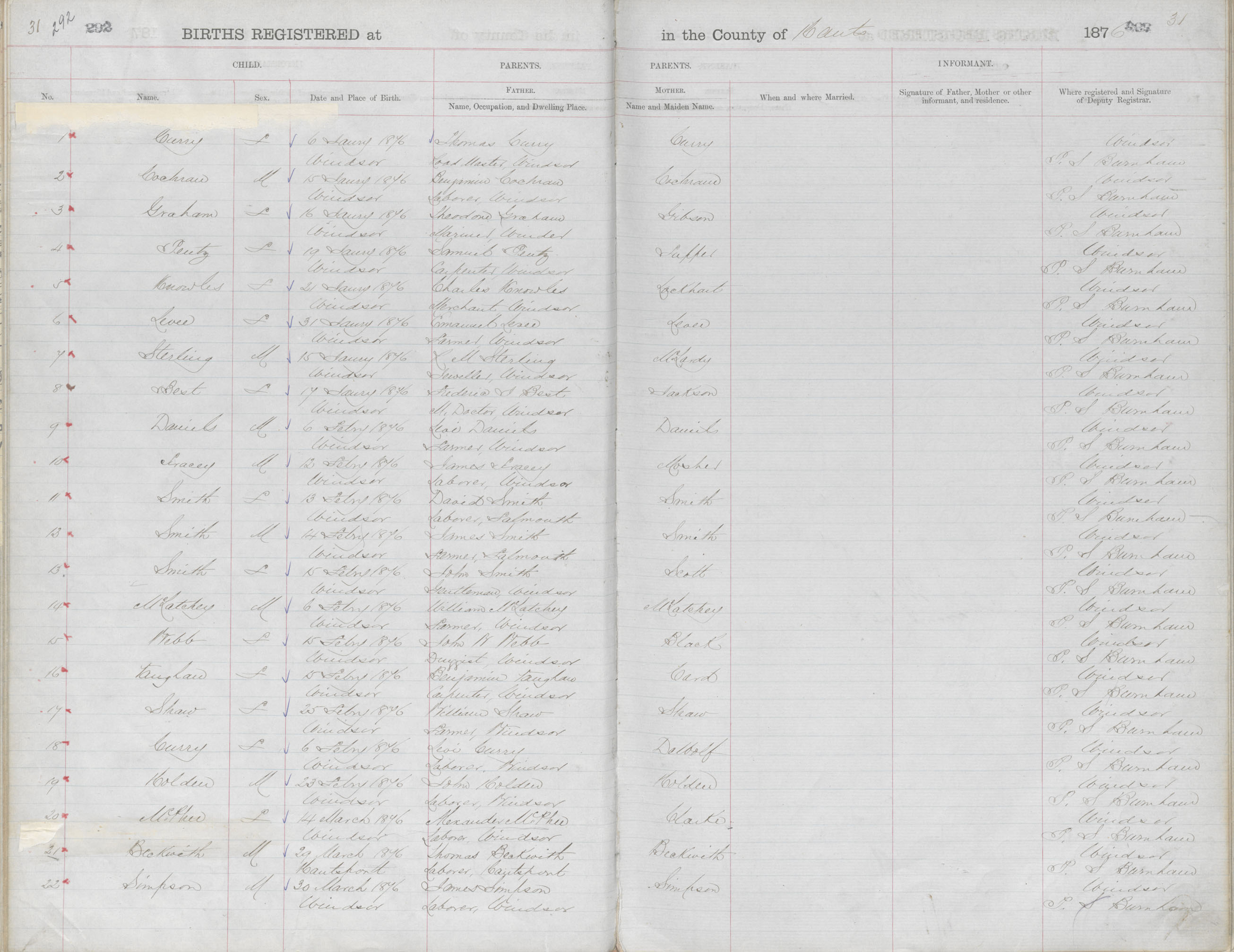 Birth Registration: Year: 1876 book: 1813 page: 31 number: 1