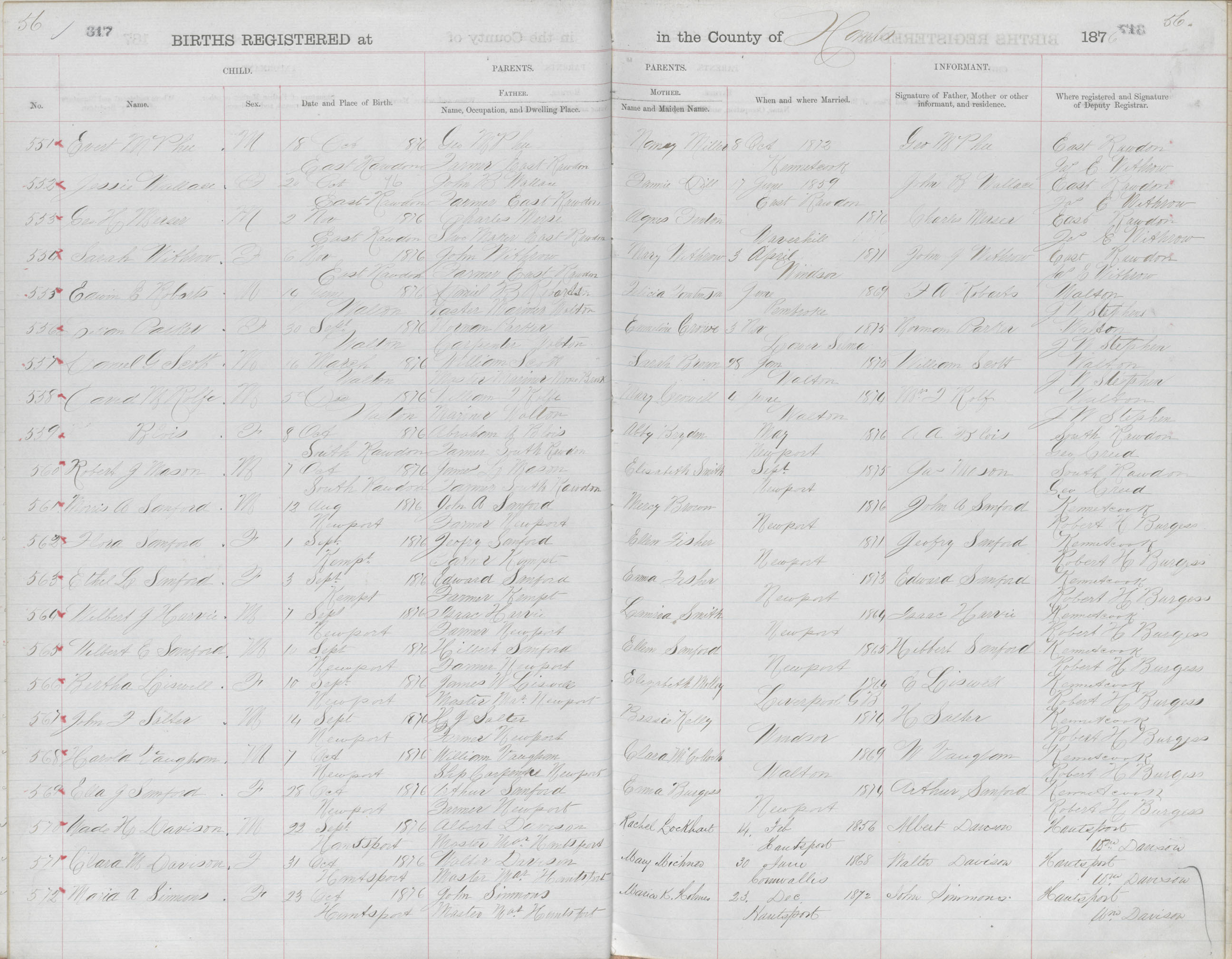 Birth Registration: Year: 1876 book: 1813 page: 56 number: 572