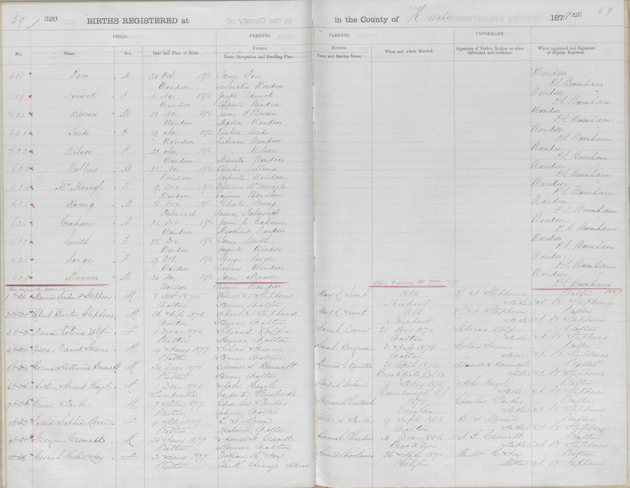 Birth Registration: Year: 1876 book: 1813 page: 59 number: 629