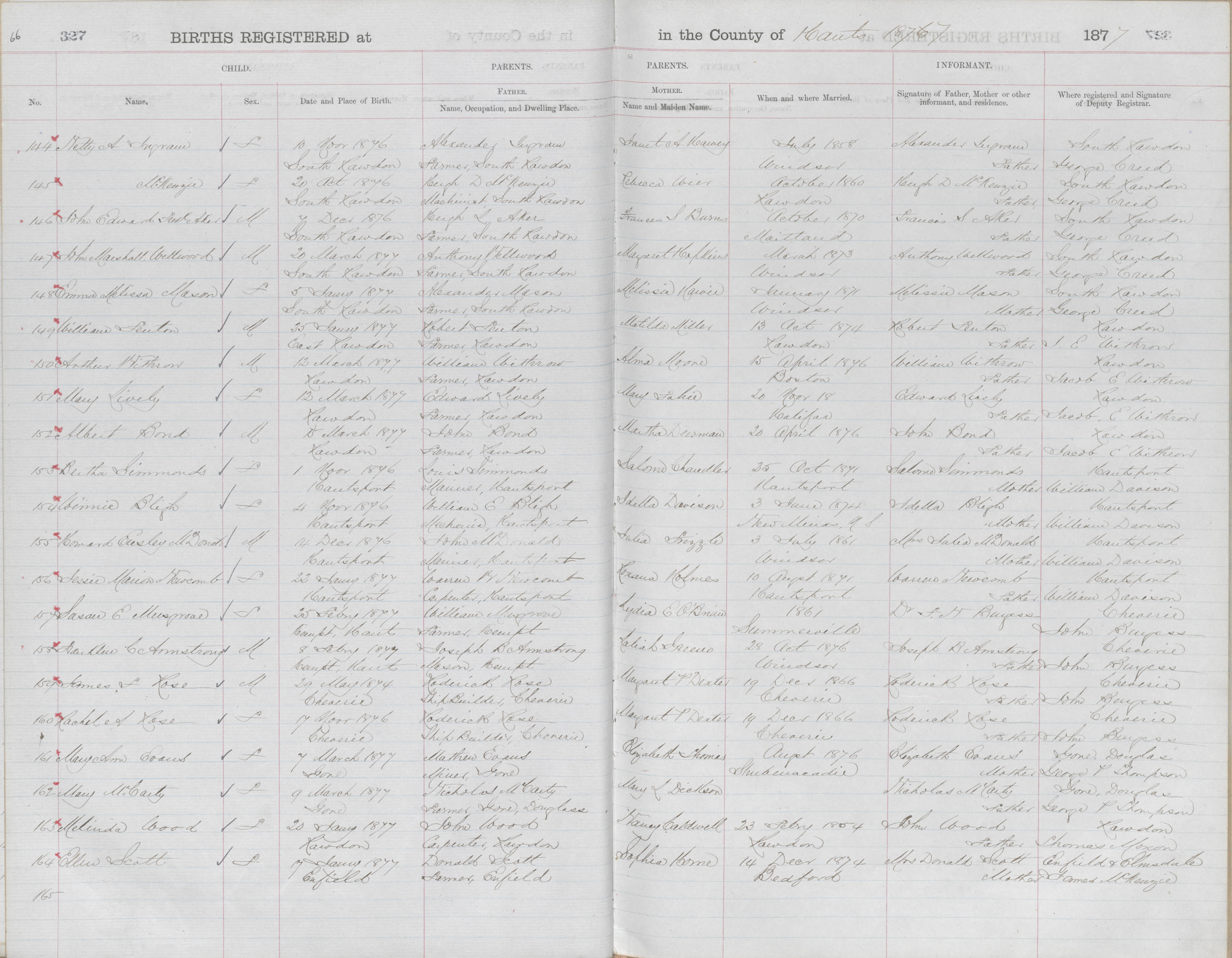 Birth Registration: Year: 1876 book: 1813 page: 66 number: 153