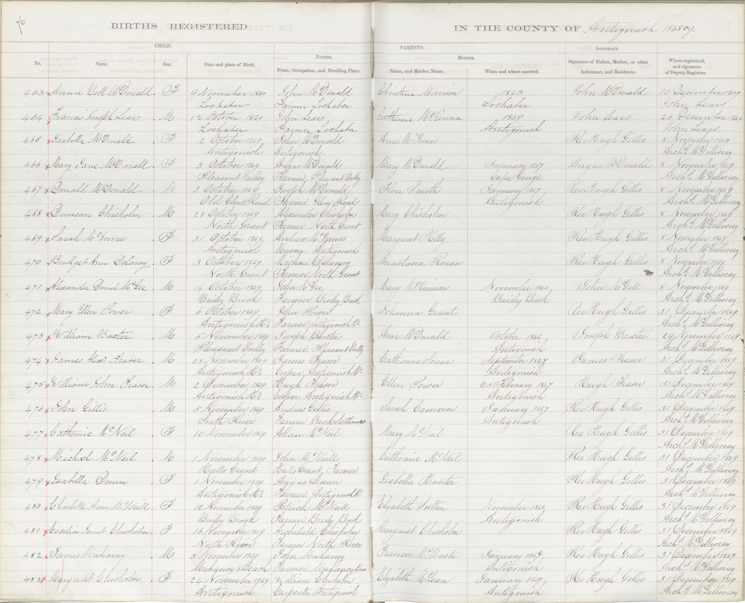 Birth Registration: Year: 1869 book: 1802 page: 76 number: 463