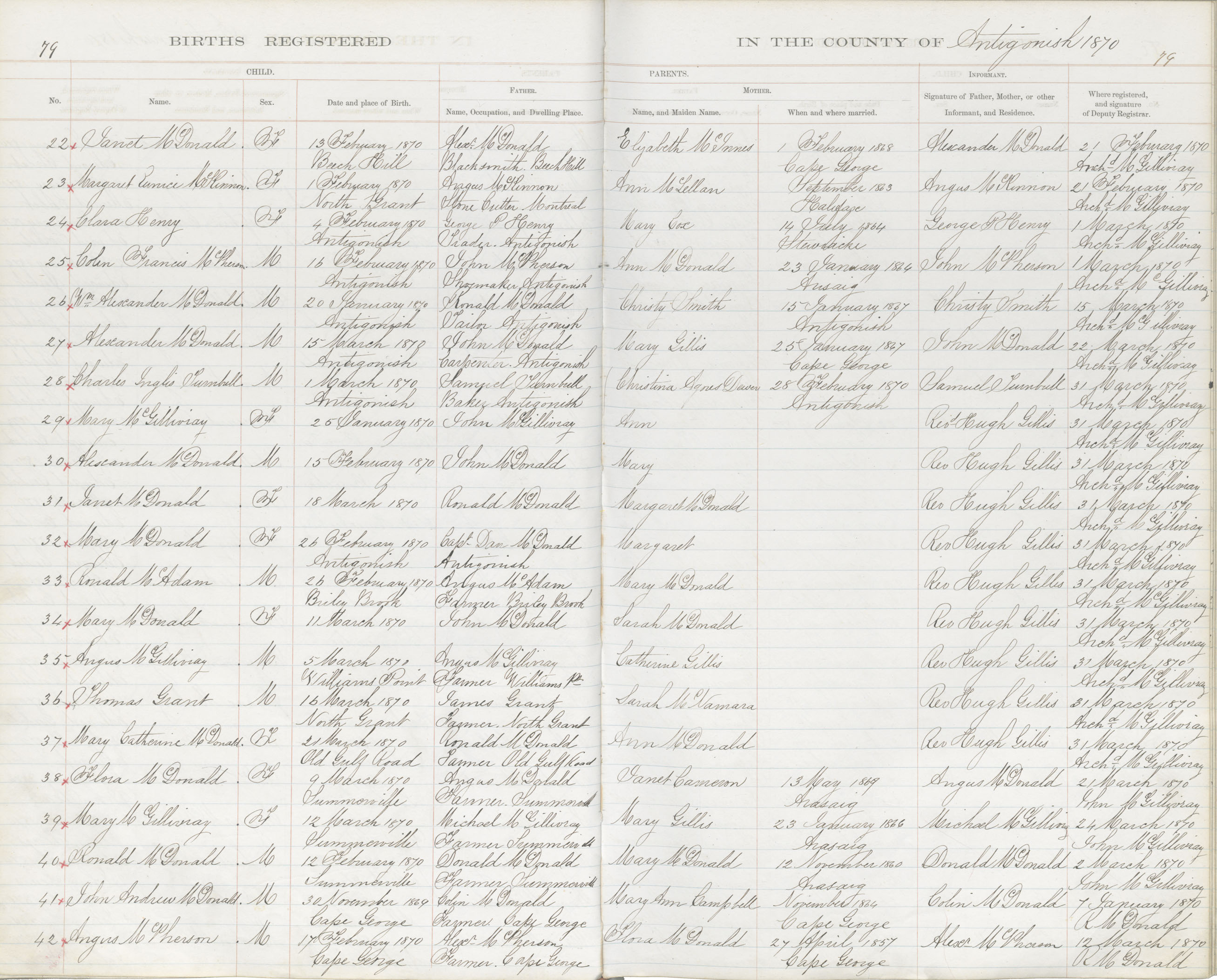 Birth Registration: Year: 1870 book: 1802 page: 79 number: 22