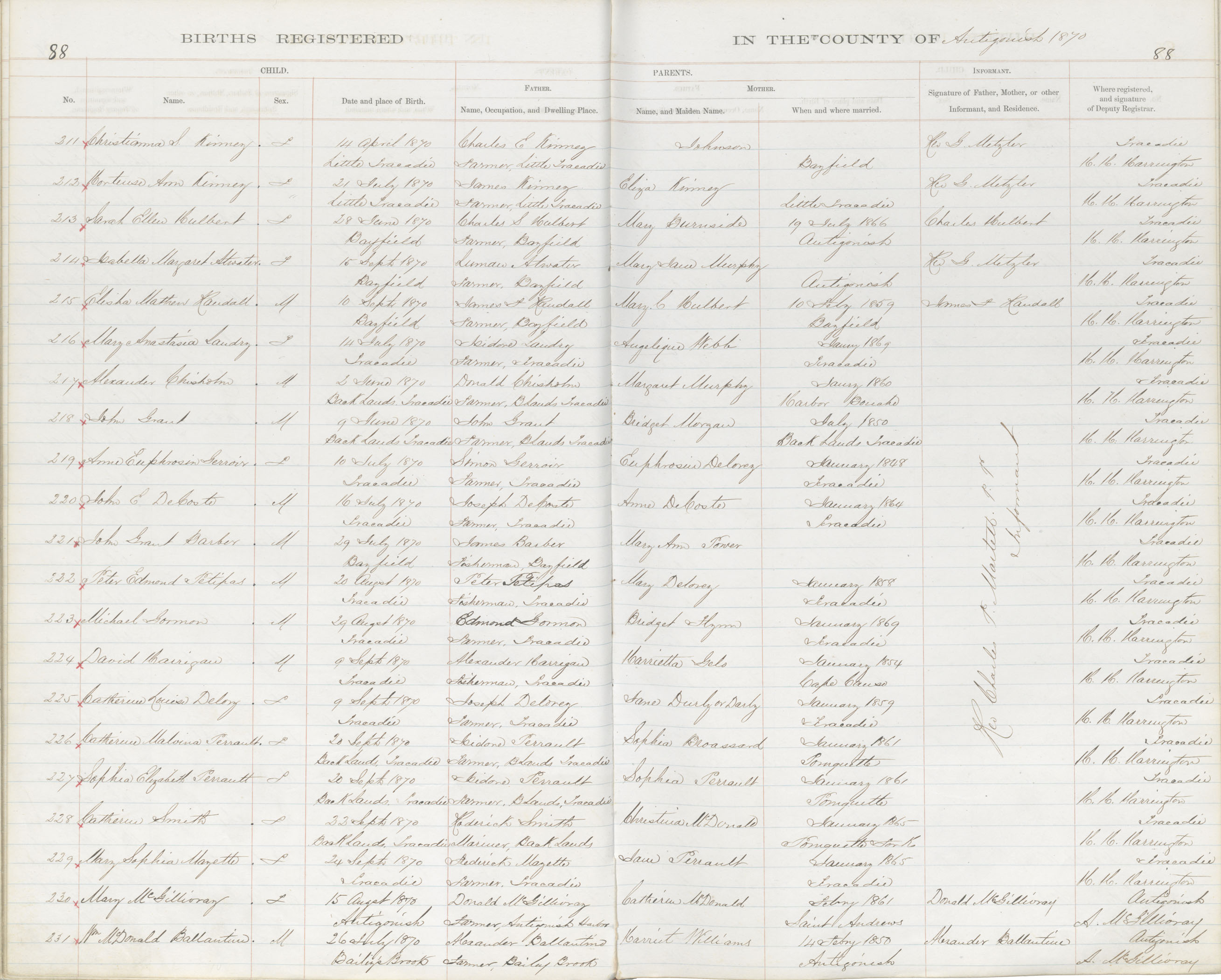 Birth Registration: Year: 1870 book: 1802 page: 88 number: 231