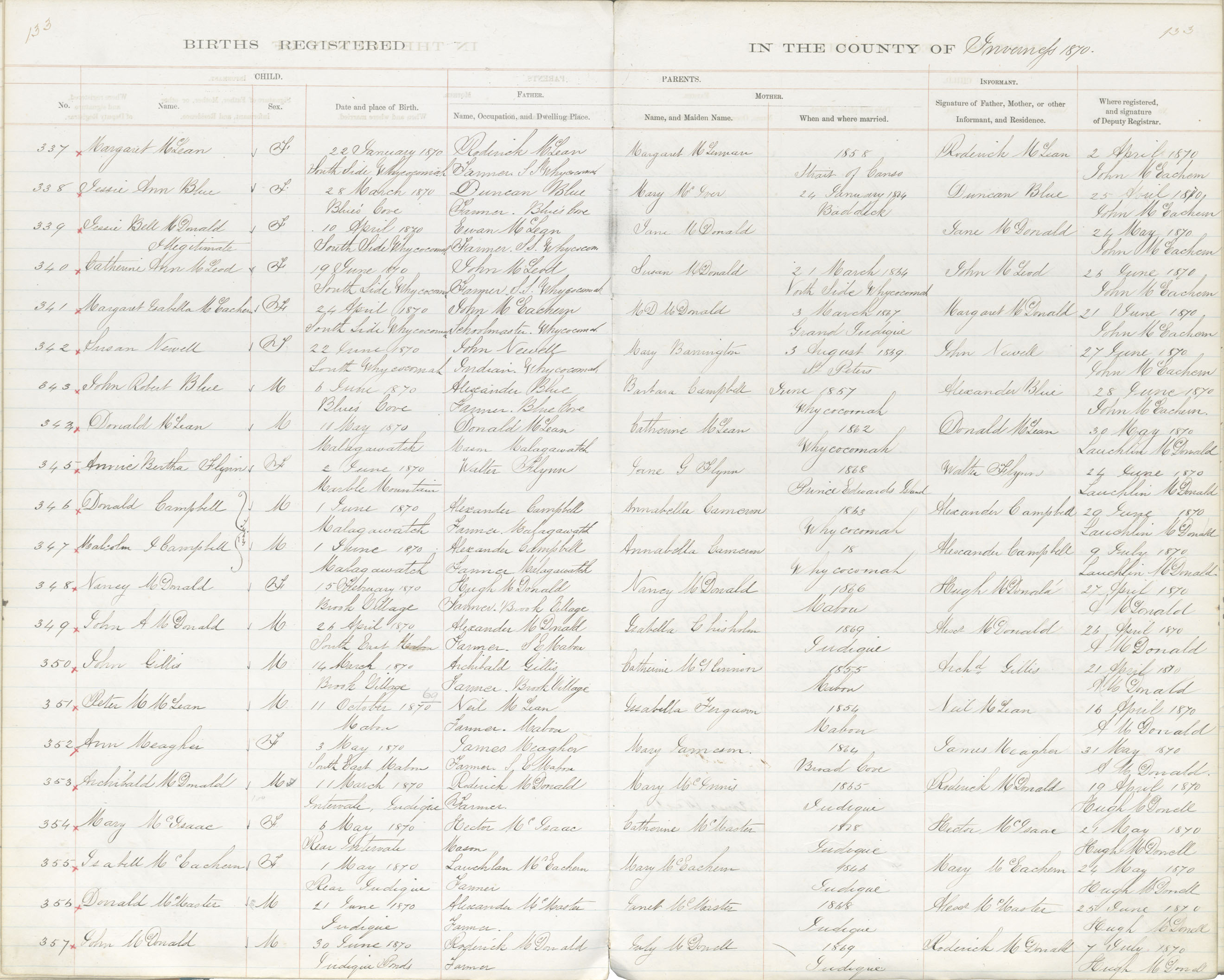 Birth Registration: Year: 1870 book: 1814 page: 133 number: 337