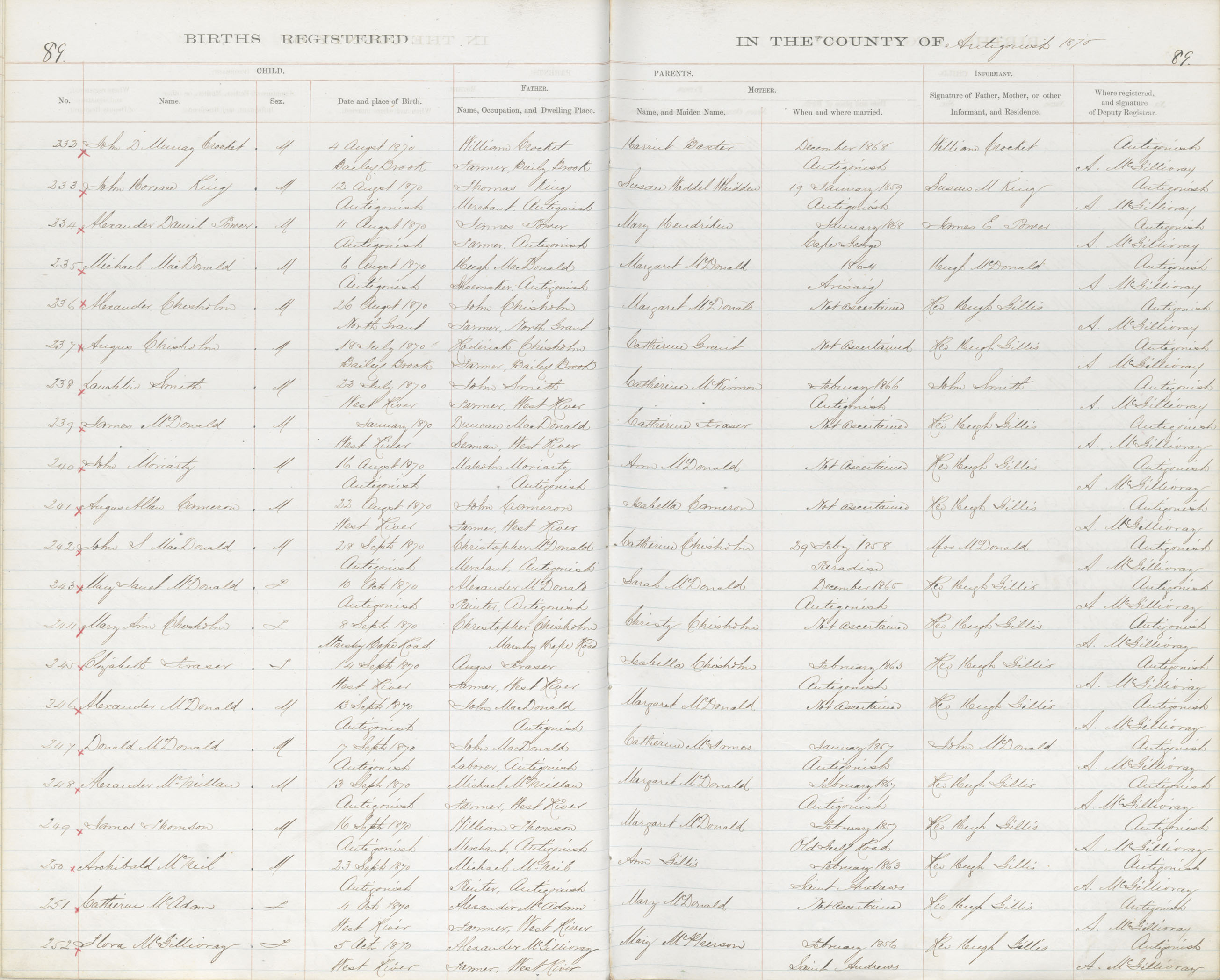 Birth Registration: Year: 1870 book: 1802 page: 89 number: 235