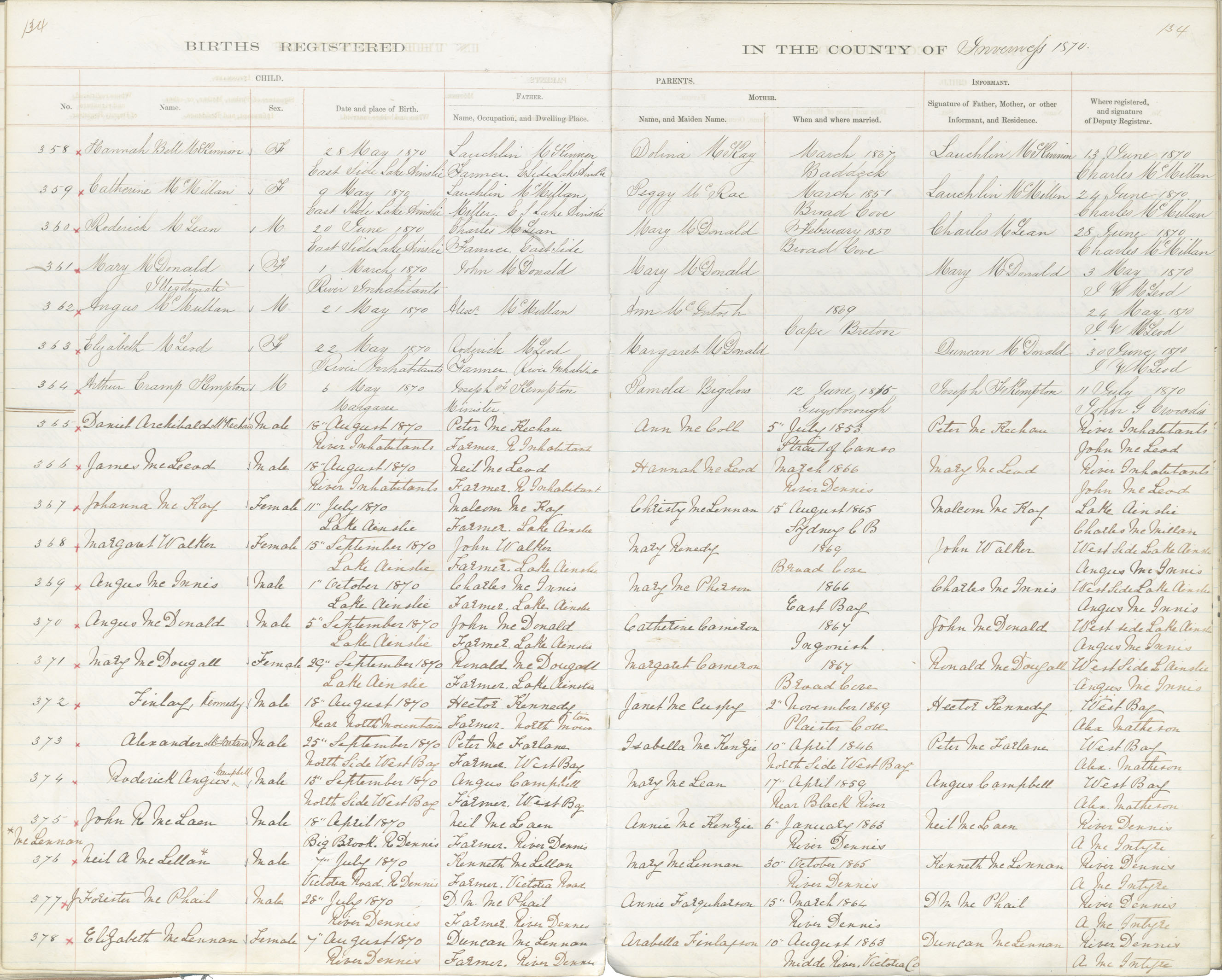 Birth Registration: Year: 1870 book: 1814 page: 134 number: 358