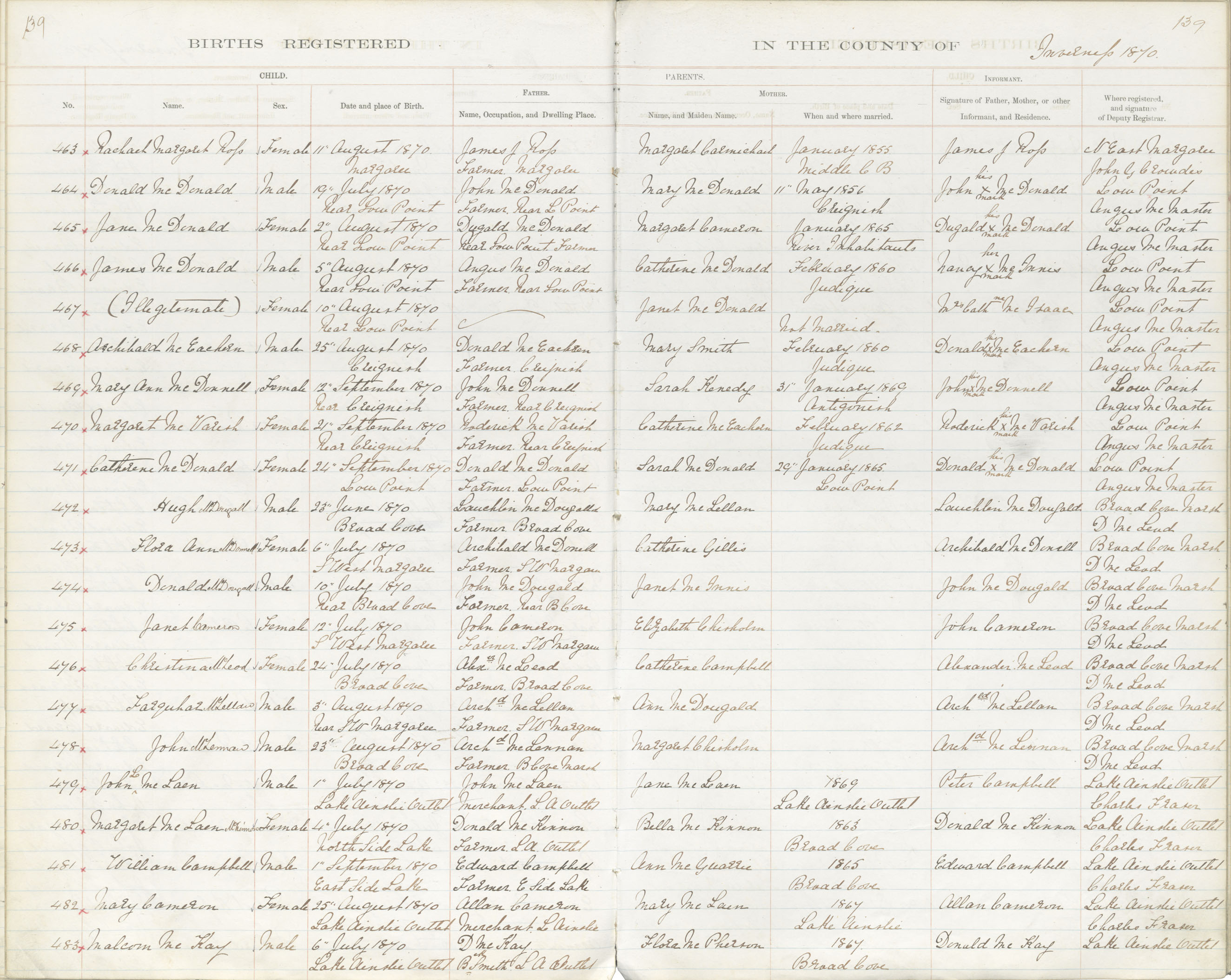 Birth Registration: Year: 1870 book: 1814 page: 139 number: 483