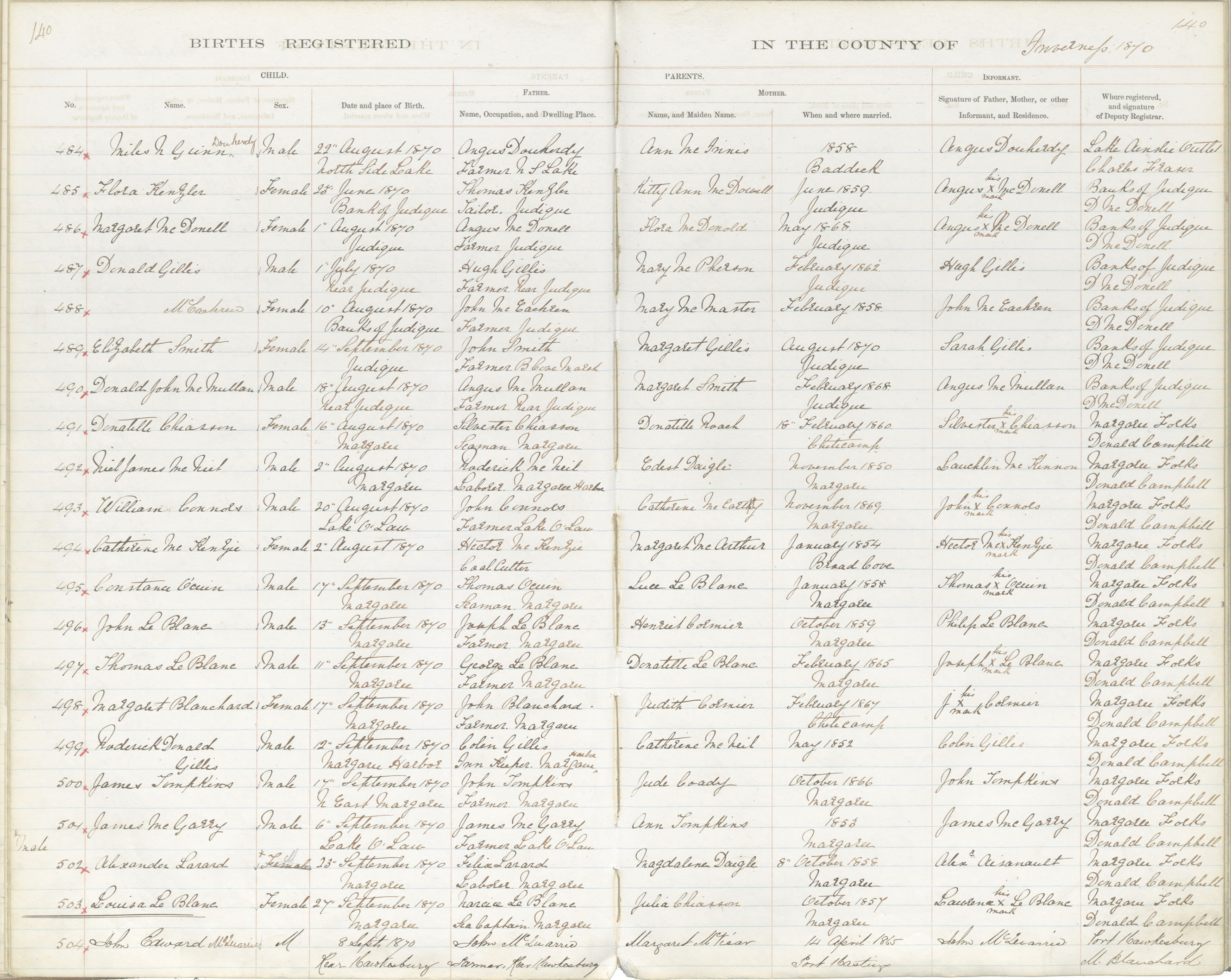 Birth Registration: Year: 1870 book: 1814 page: 140 number: 504