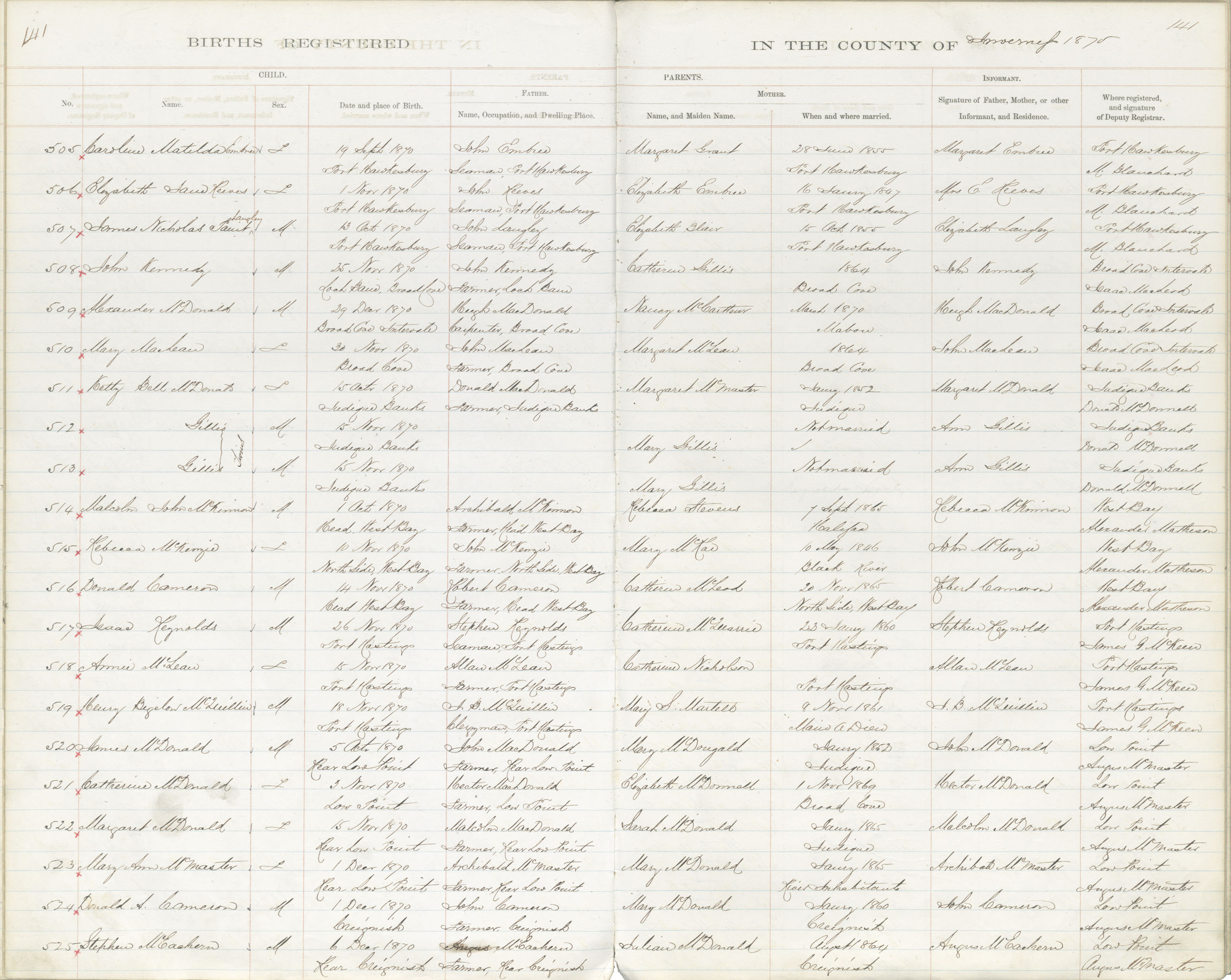 Birth Registration: Year: 1870 book: 1814 page: 141 number: 525