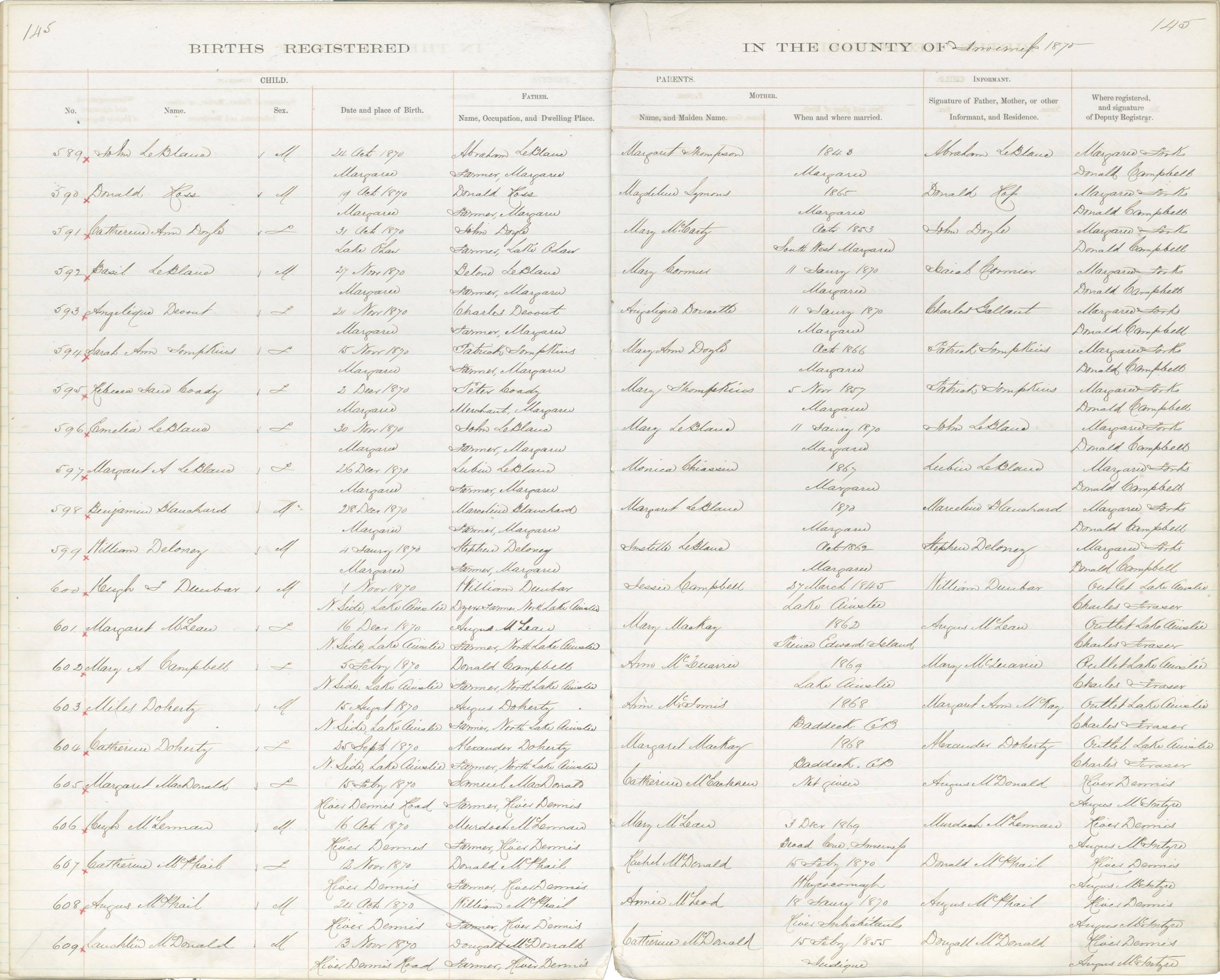 Birth Registration: Year: 1870 book: 1814 page: 145 number: 605