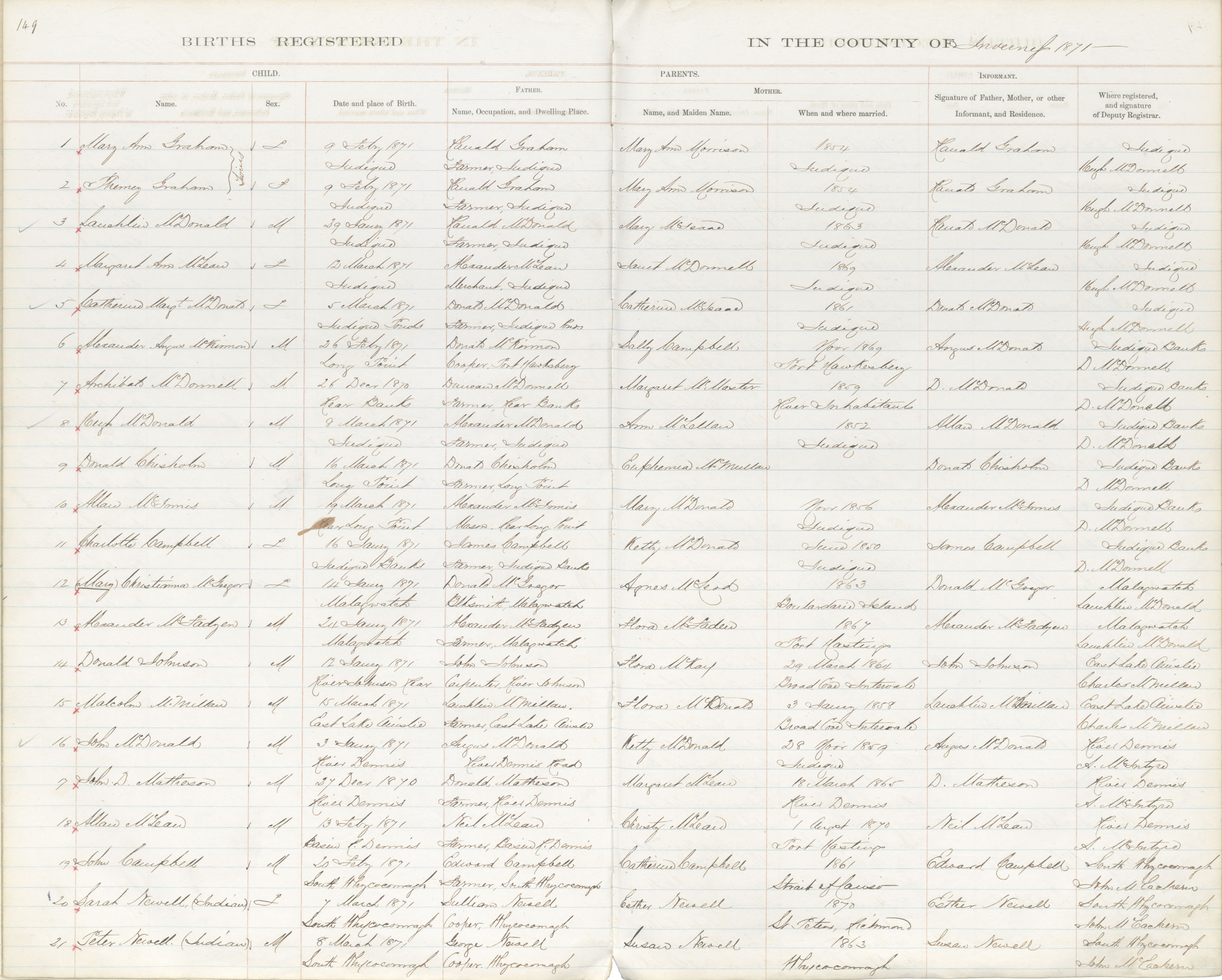 Birth Registration: Year: 1871 book: 1814 page: 149 number: 1