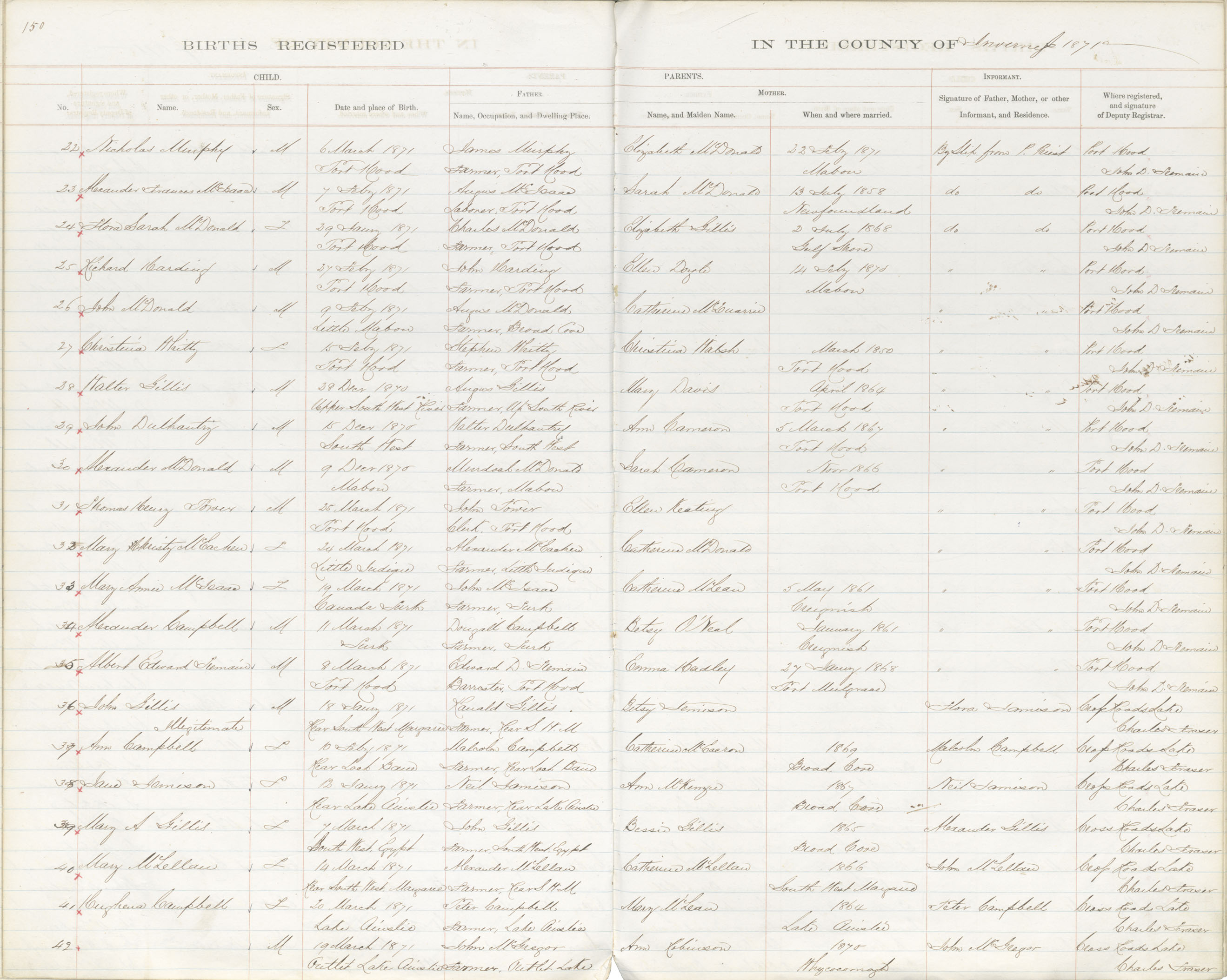 Male Birth Registration: Year: 1871 book: 1814 page: 150 number: 42
