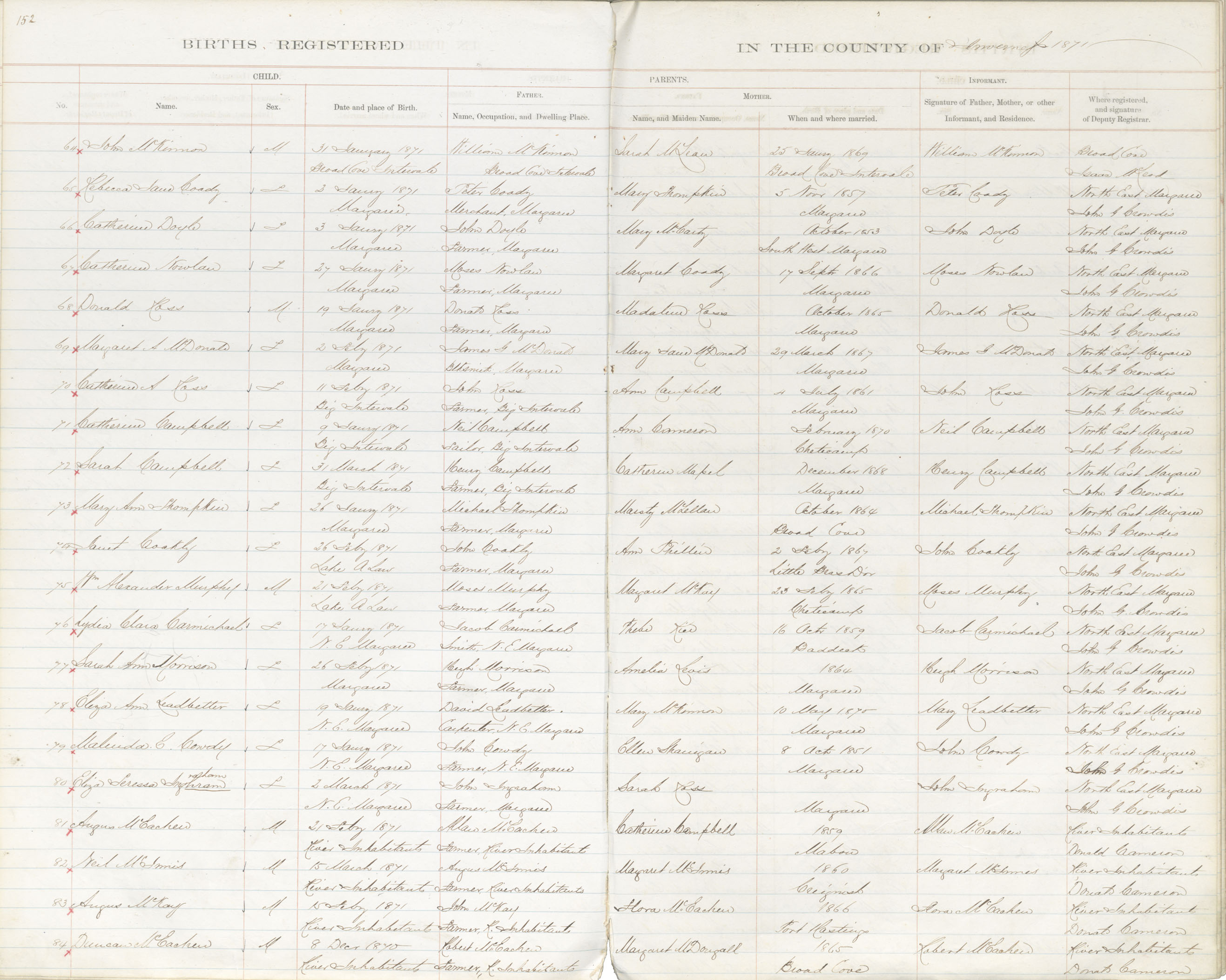 Birth Registration: Year: 1871 book: 1814 page: 152 number: 84