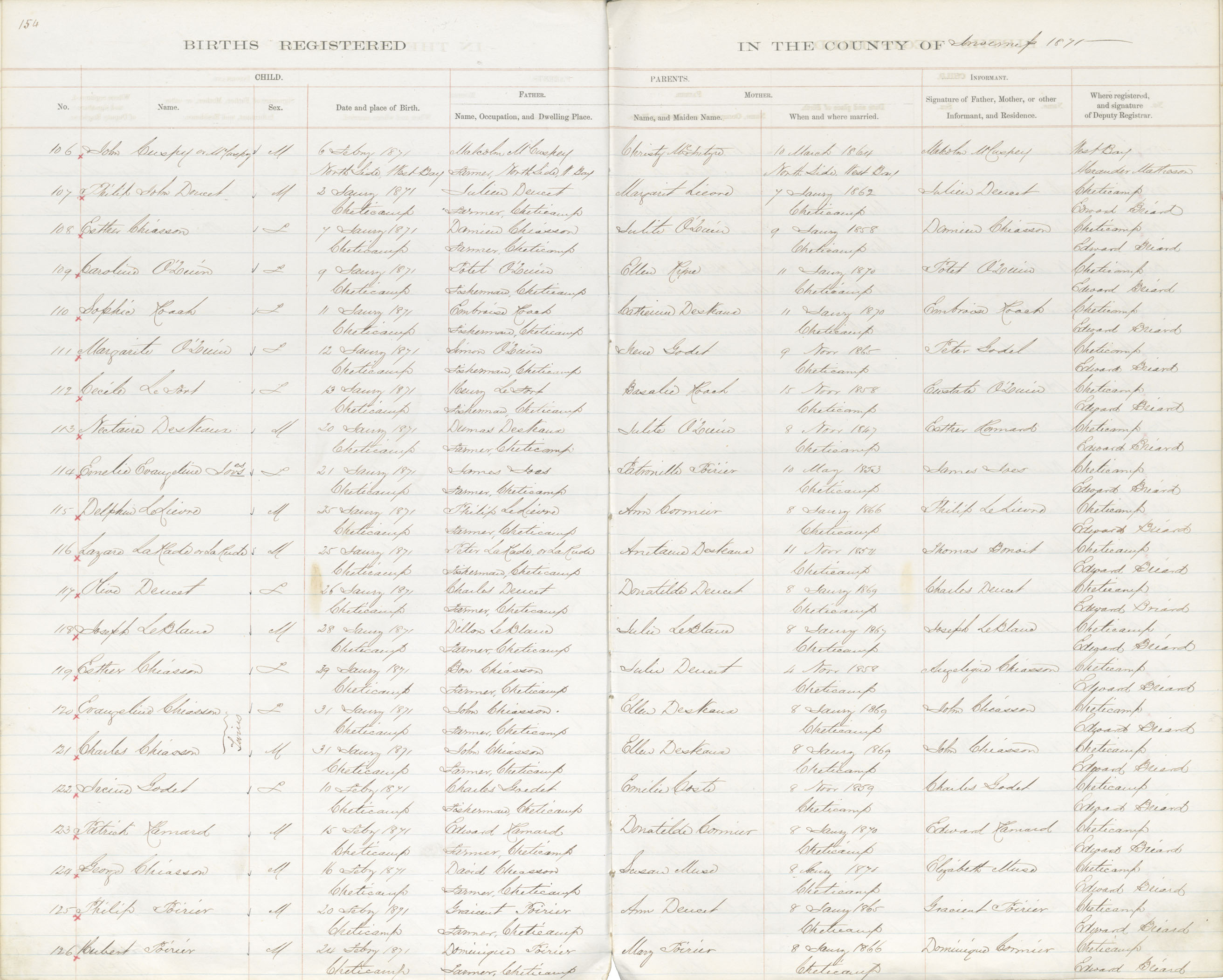 Birth Registration: Year: 1871 book: 1814 page: 154 number: 106