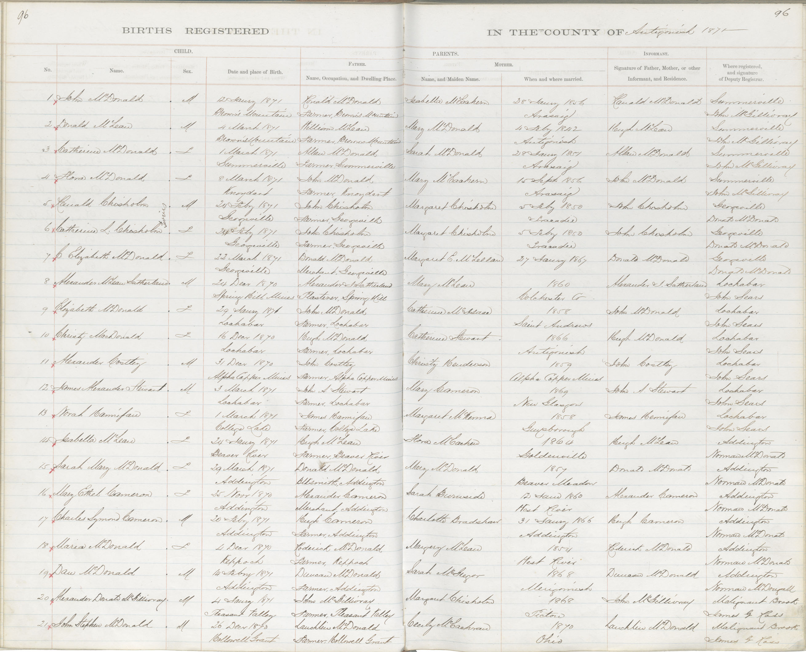 Birth Registration: Year: 1870 book: 1802 page: 96 number: 10