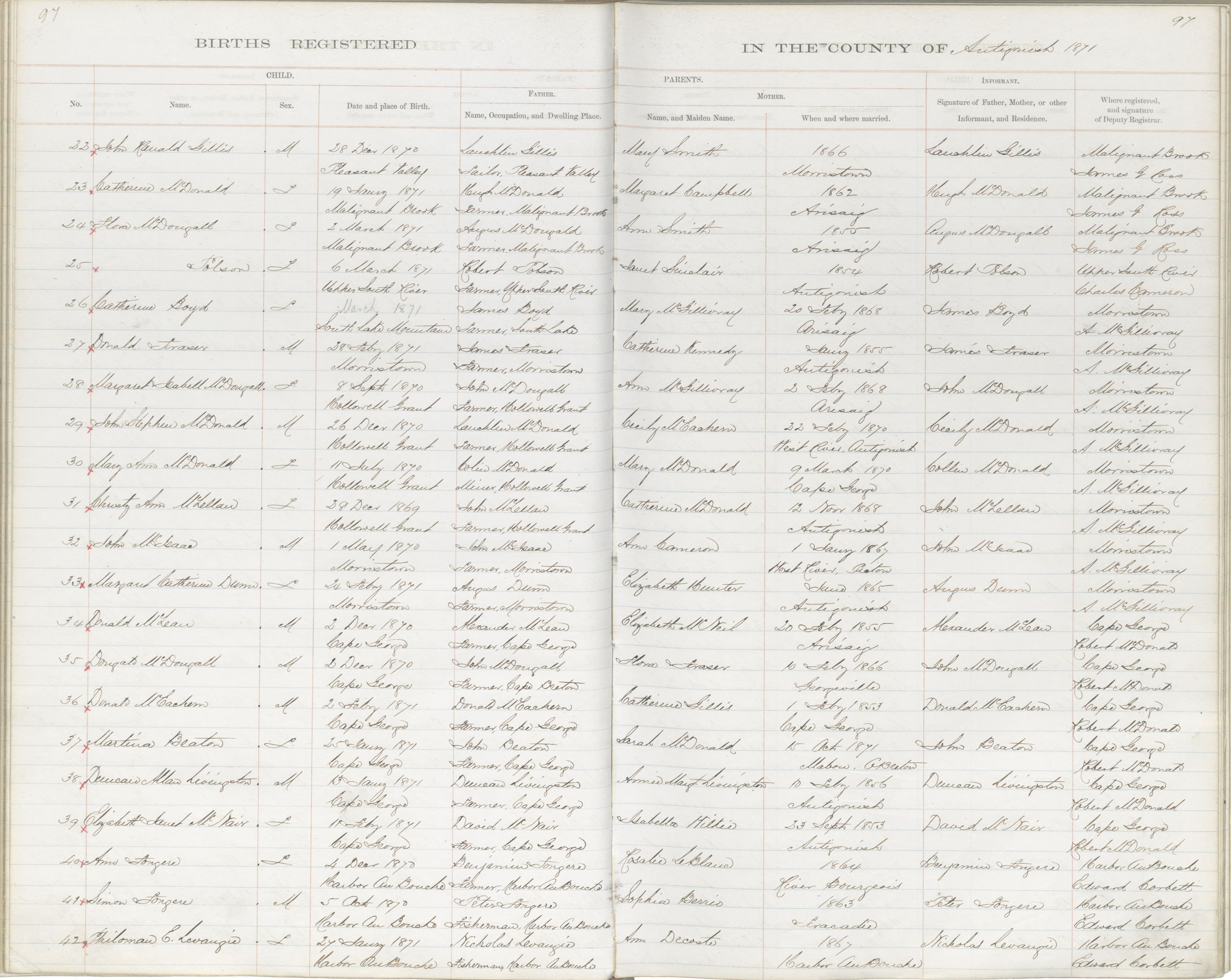 Birth Registration: Year: 1870 book: 1802 page: 97 number: 22