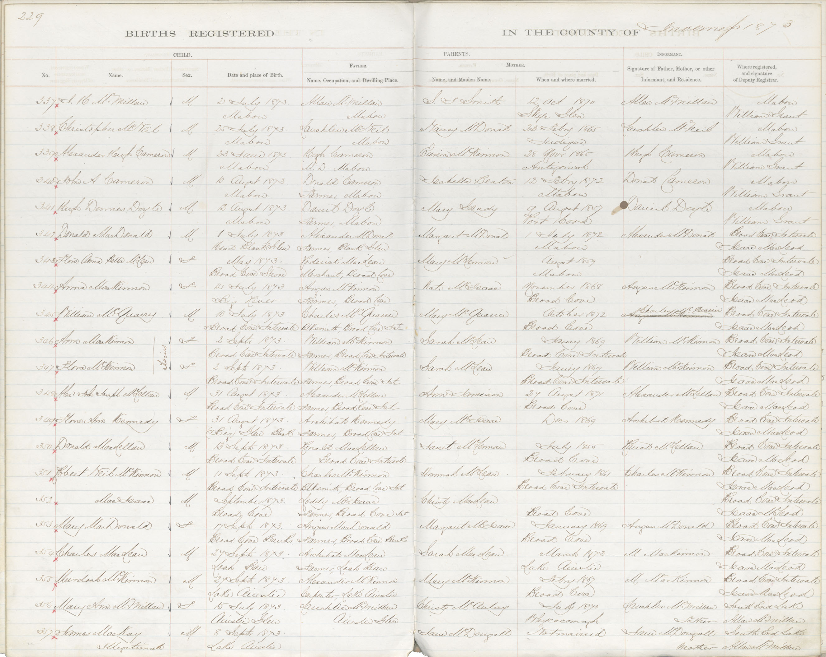 Birth Registration: Year: 1873 book: 1814 page: 229 number: 342