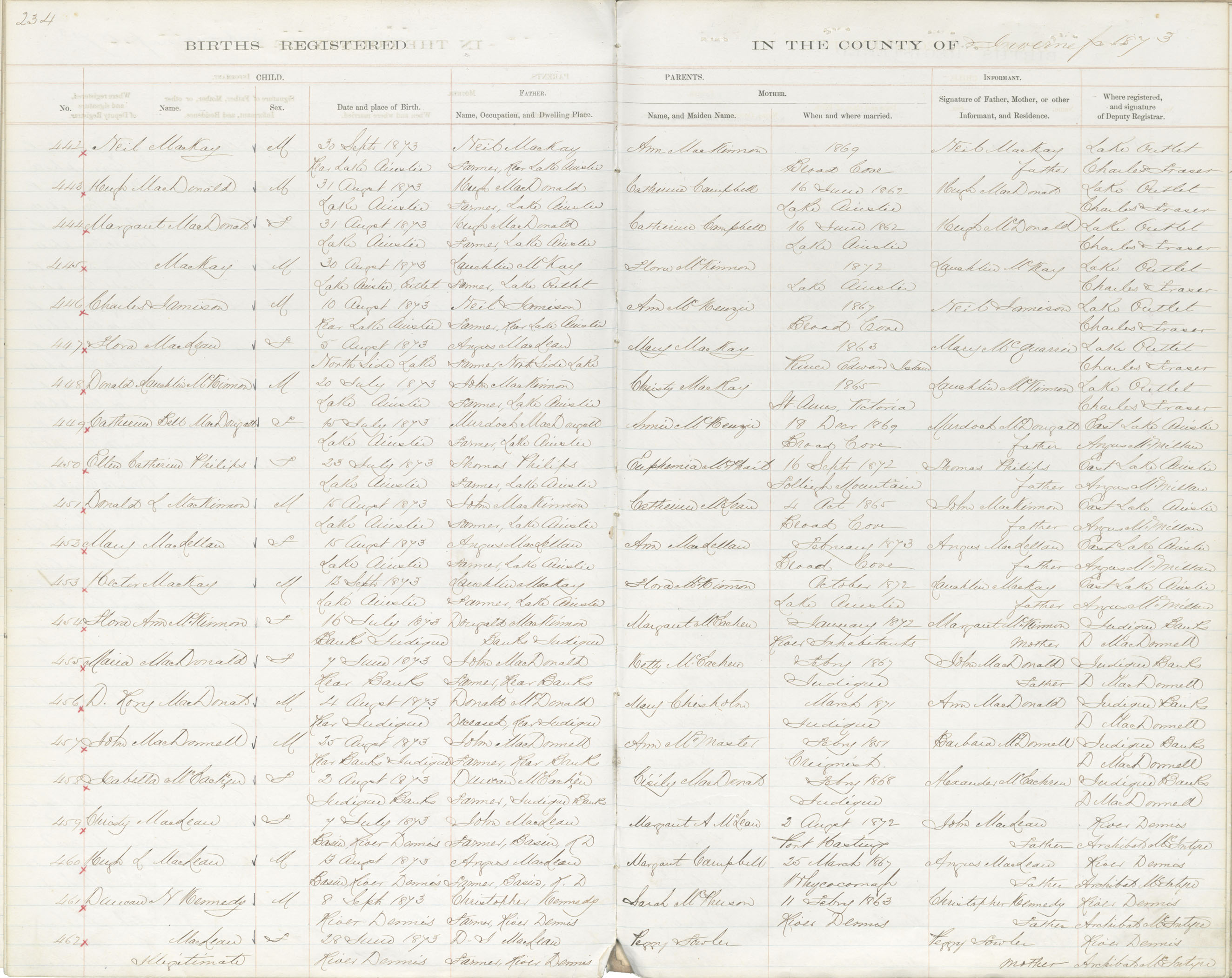Birth Registration: Year: 1873 book: 1814 page: 234 number: 455